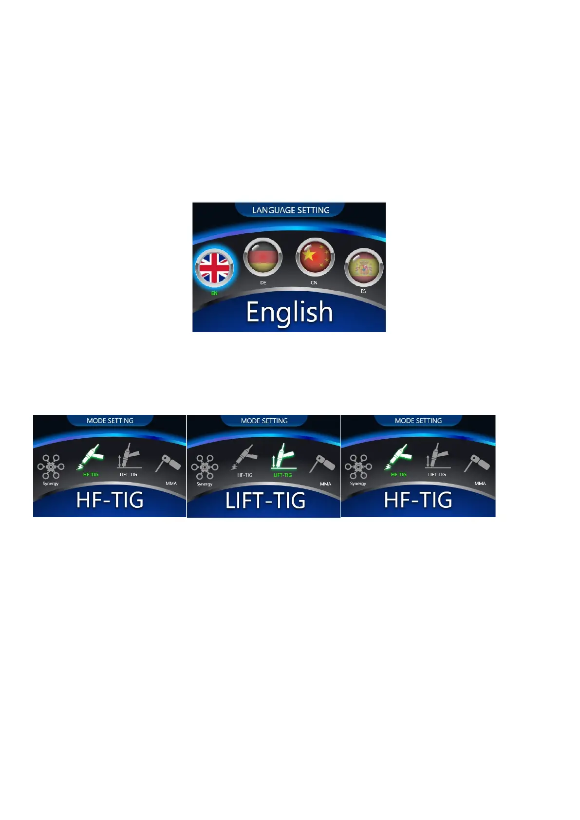 The welder offers several language options, so the operator can choose the preferred language.