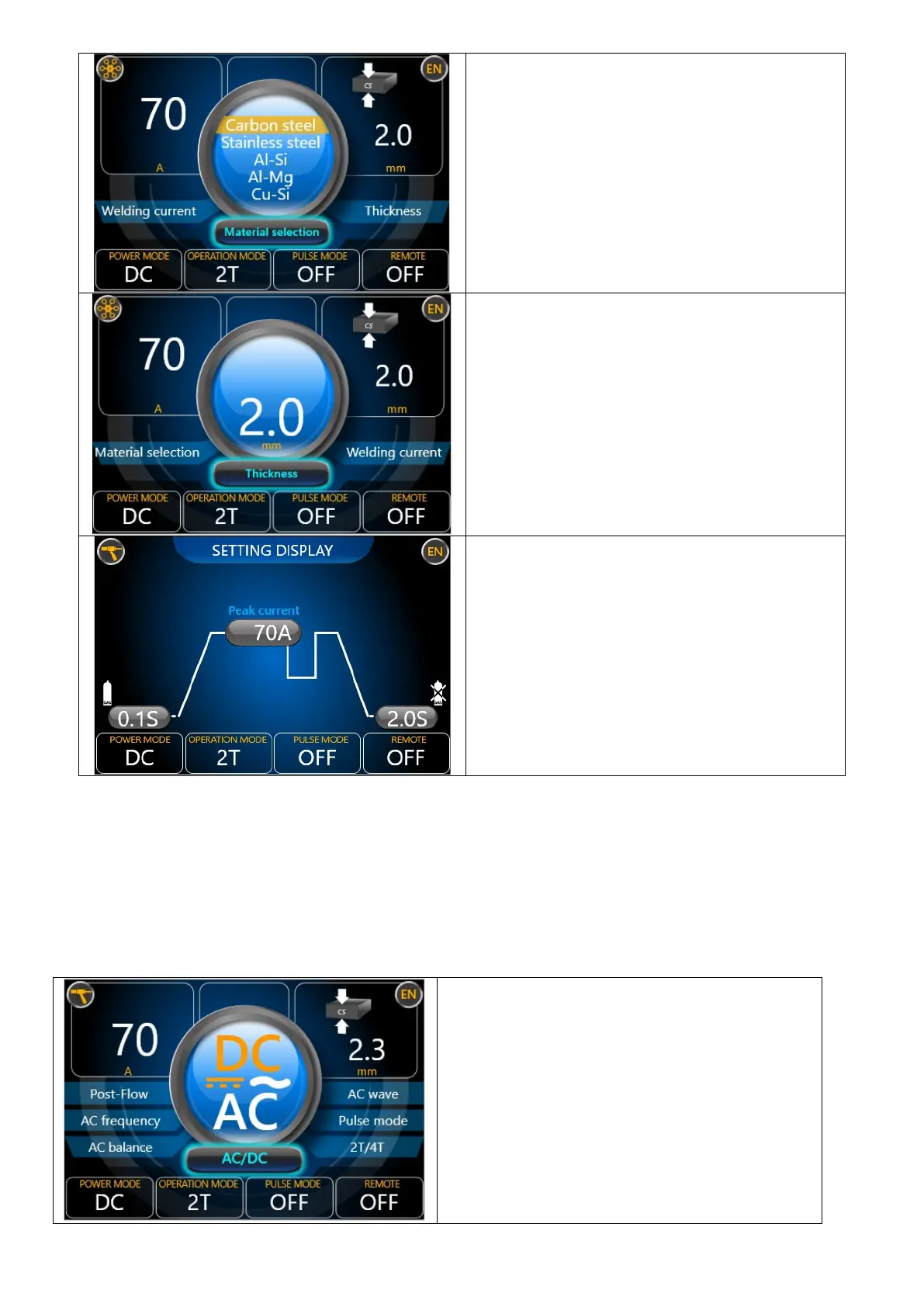 8.4. Setting the TIG DC welding parameters