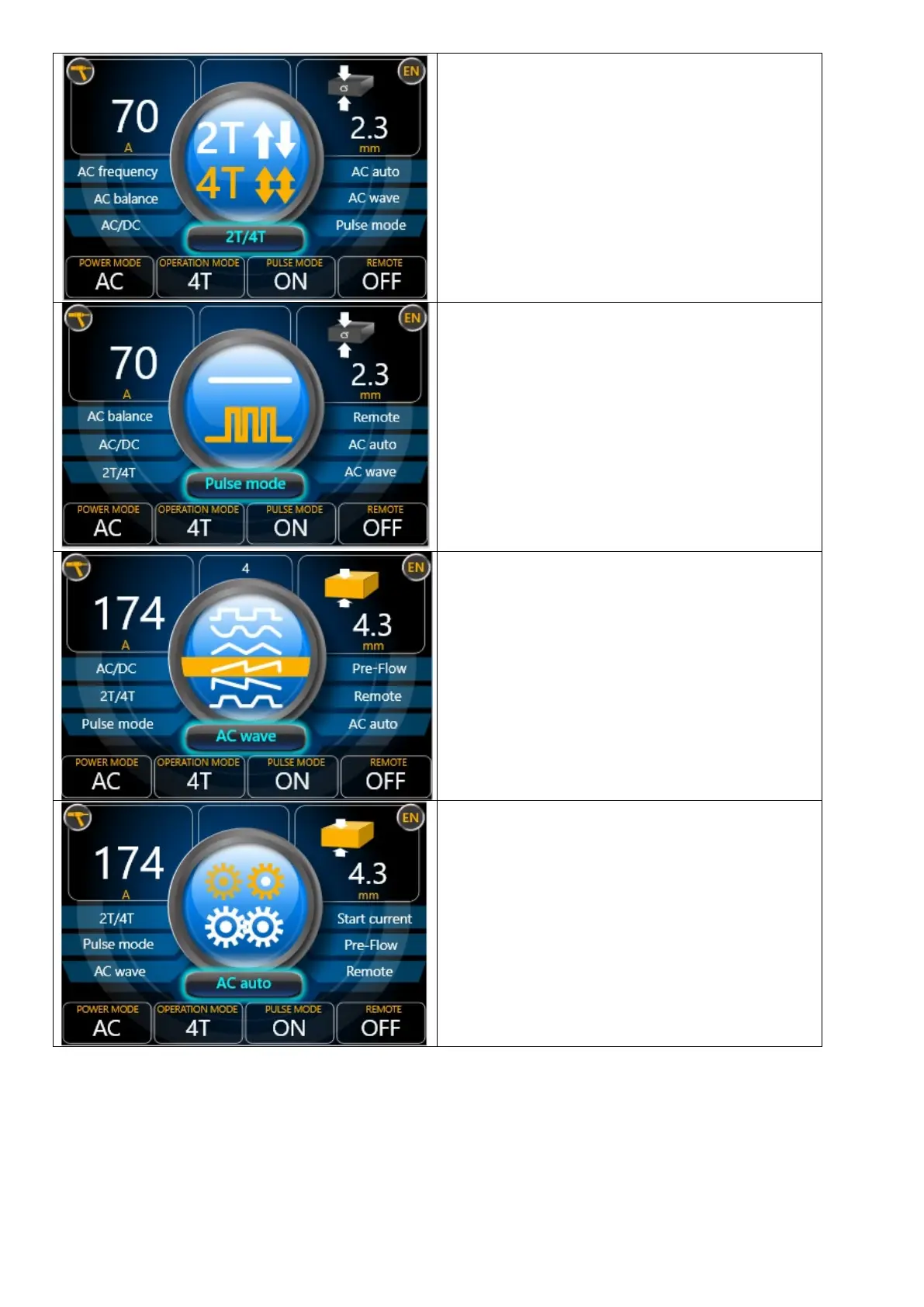 puszczeniu spawanie zostanie przerwane. Tryb 4T