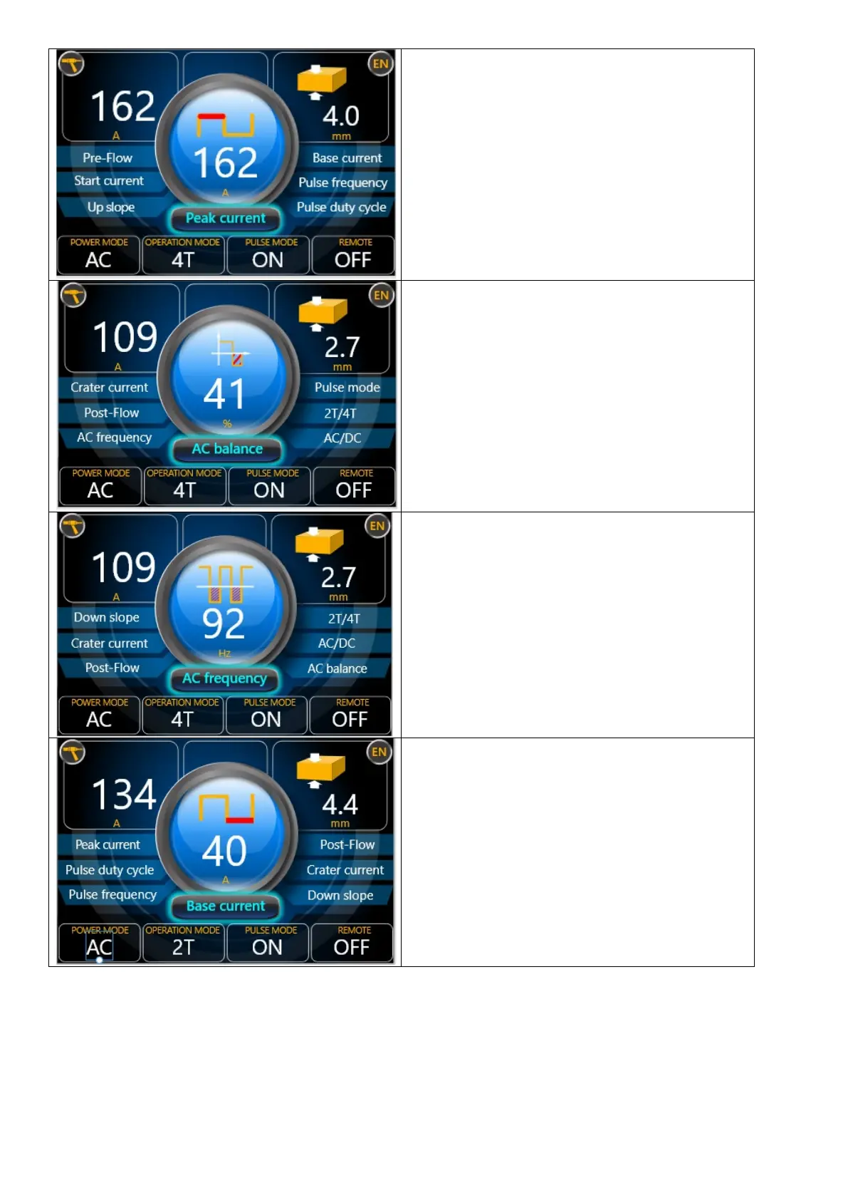 prądu przemiennego w trybie AC TIG. Umożliwia