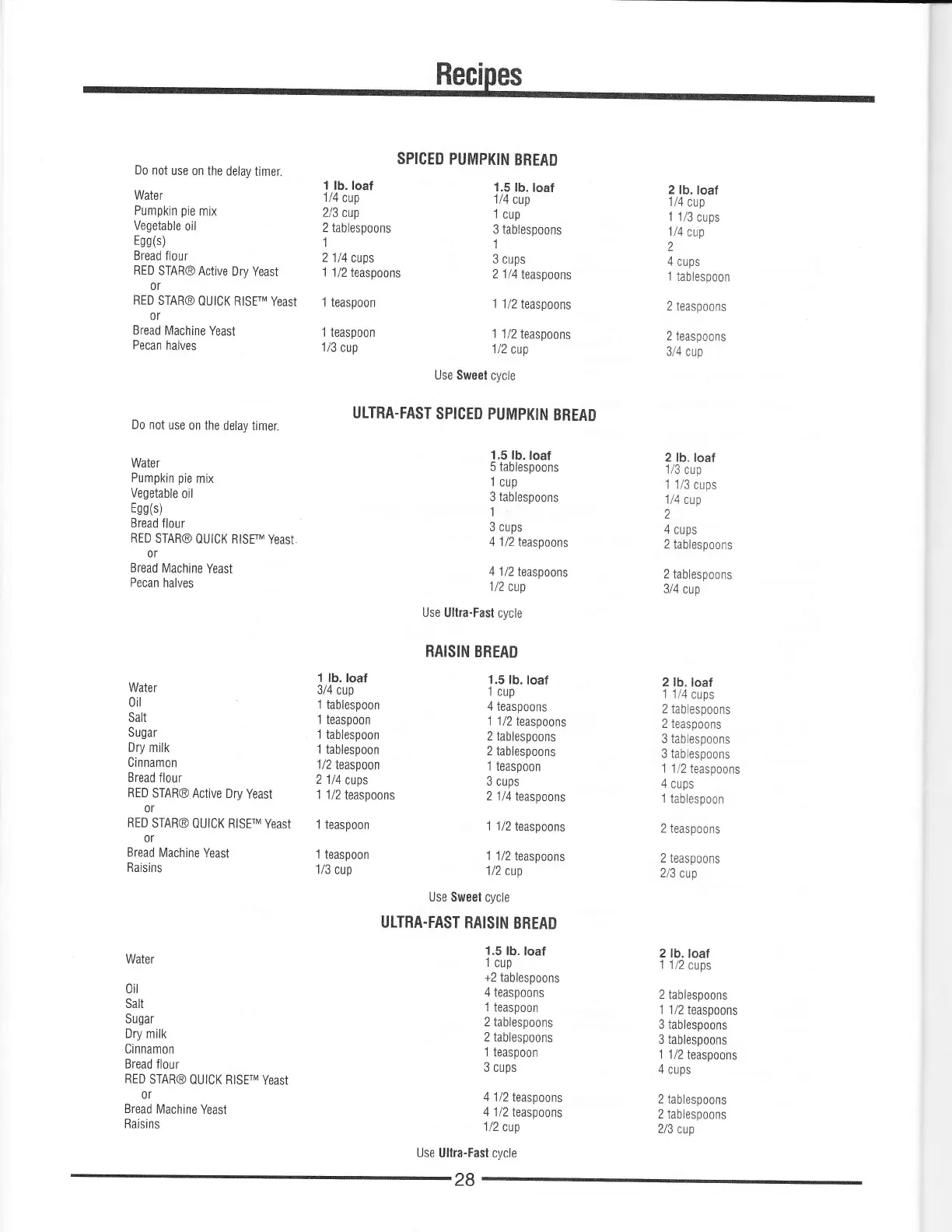 Welbilt ABM2H52 - Pumpkin, Raisin & Marmalade Bread Recipes