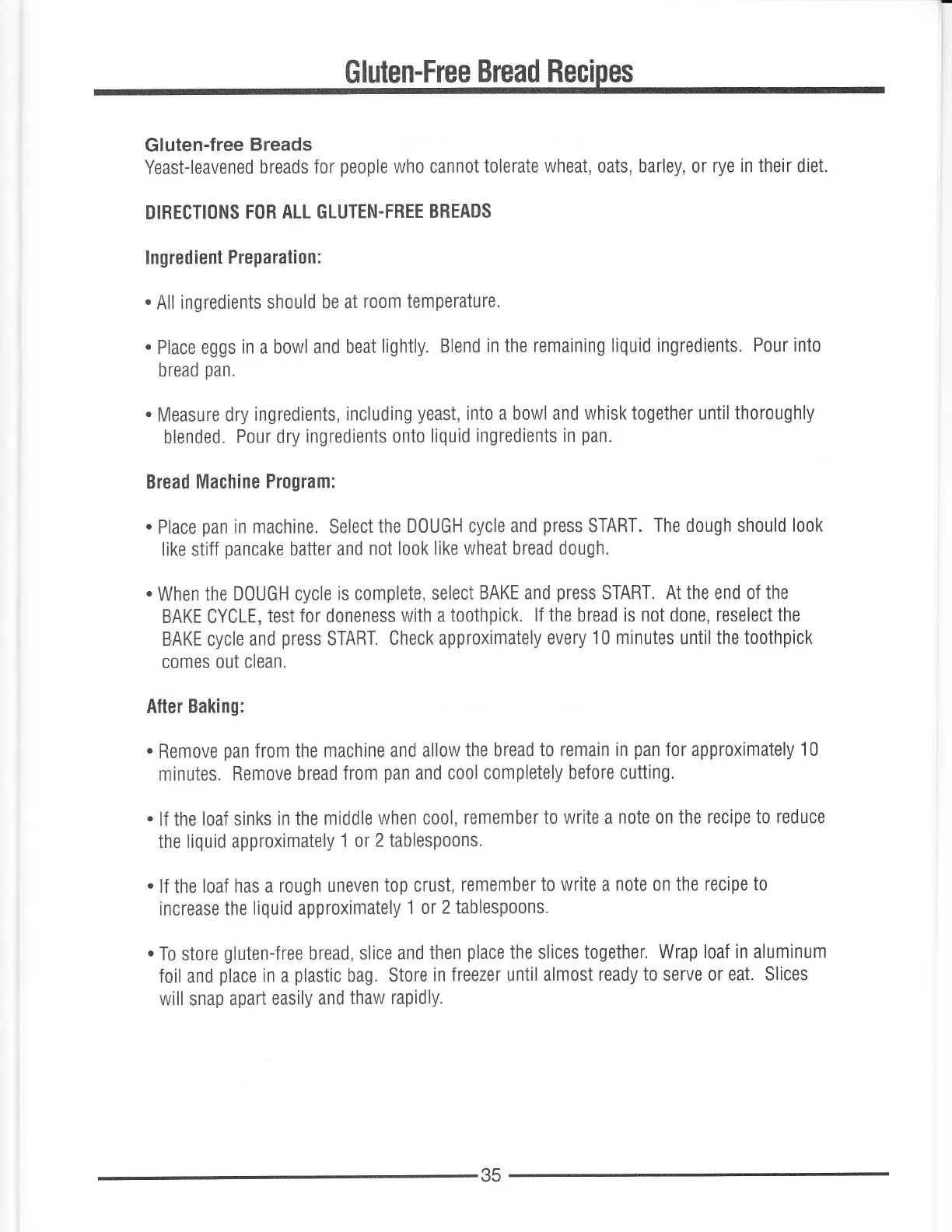 Welbilt ABM2H52 - Gluten-Free Bread Recipes; General Gluten-Free Bread Instructions