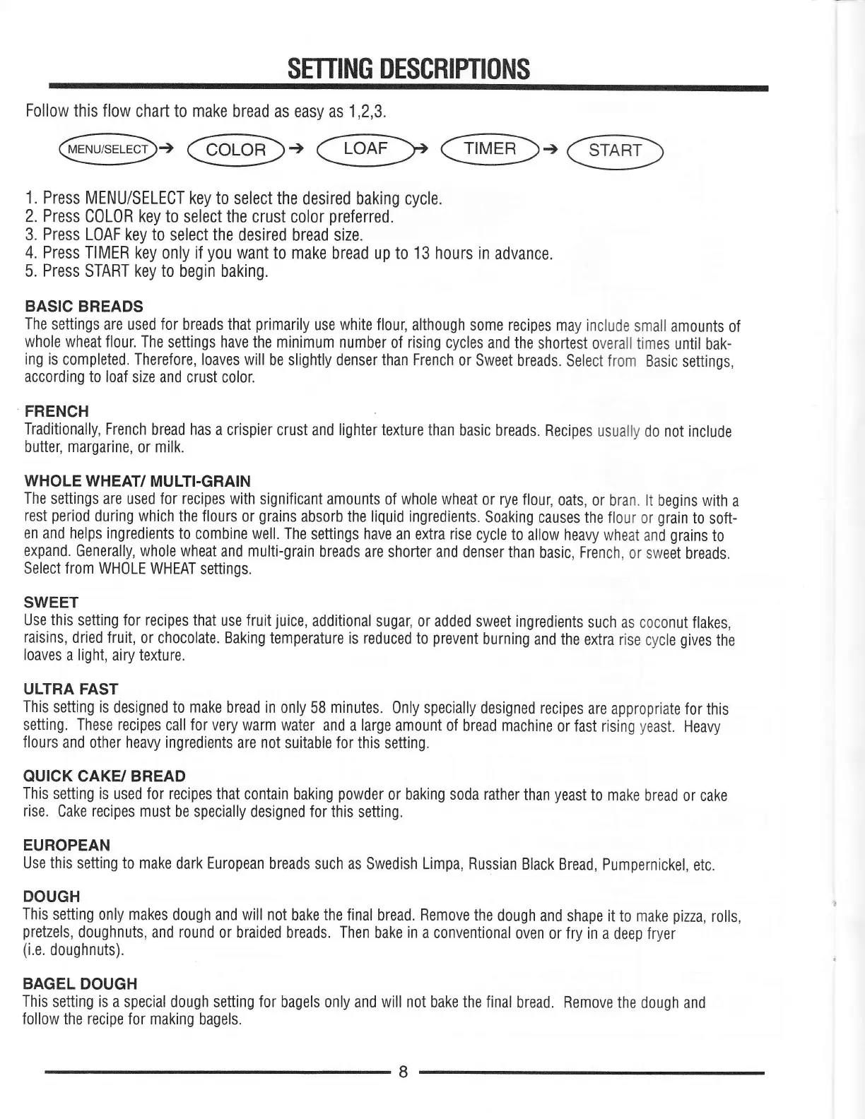 SETTING DESCRIPflONS