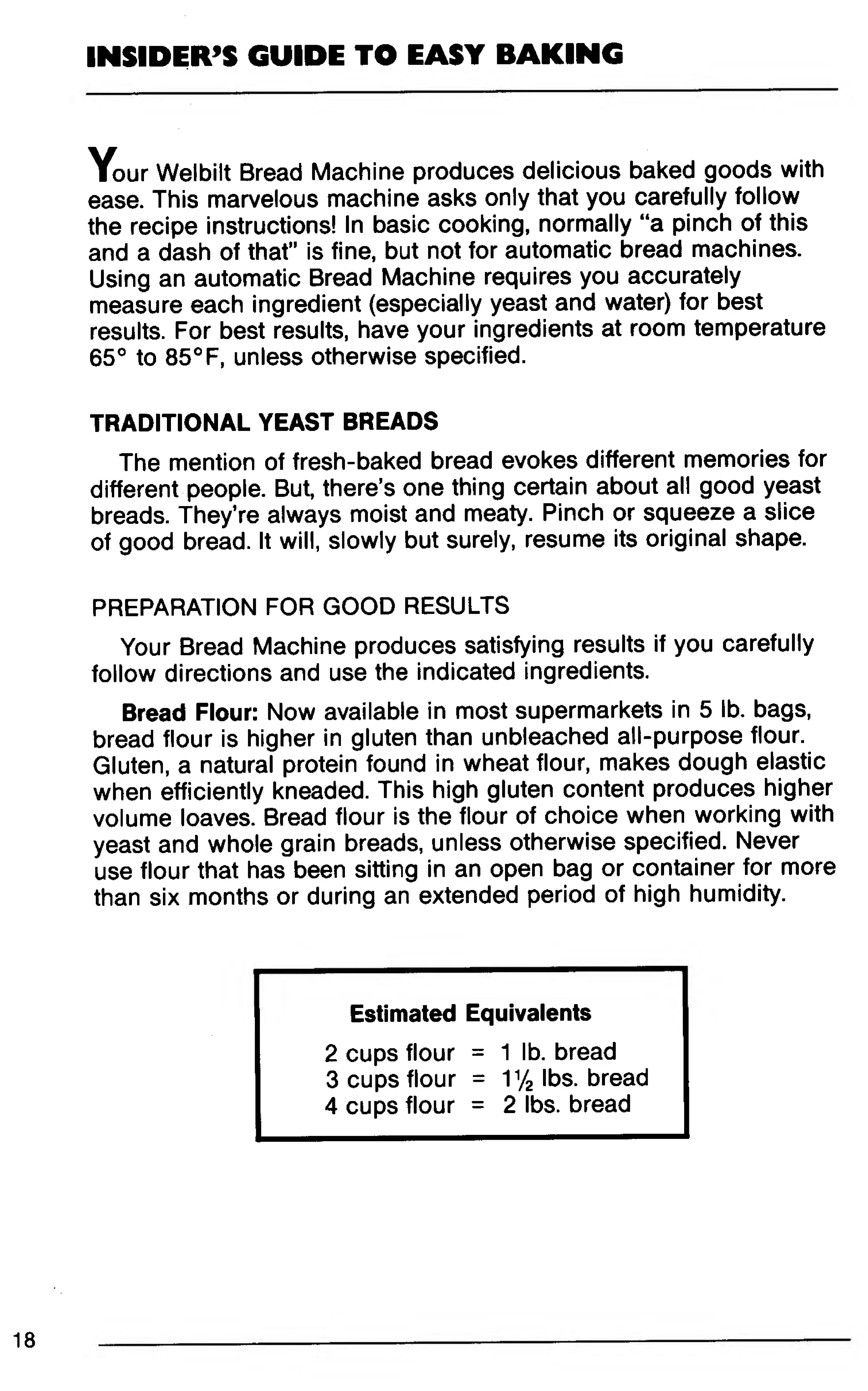 Welbilt ABM6000 - Insiders Guide to Easy Baking; Traditional Yeast Breads; Preparation for Good Results