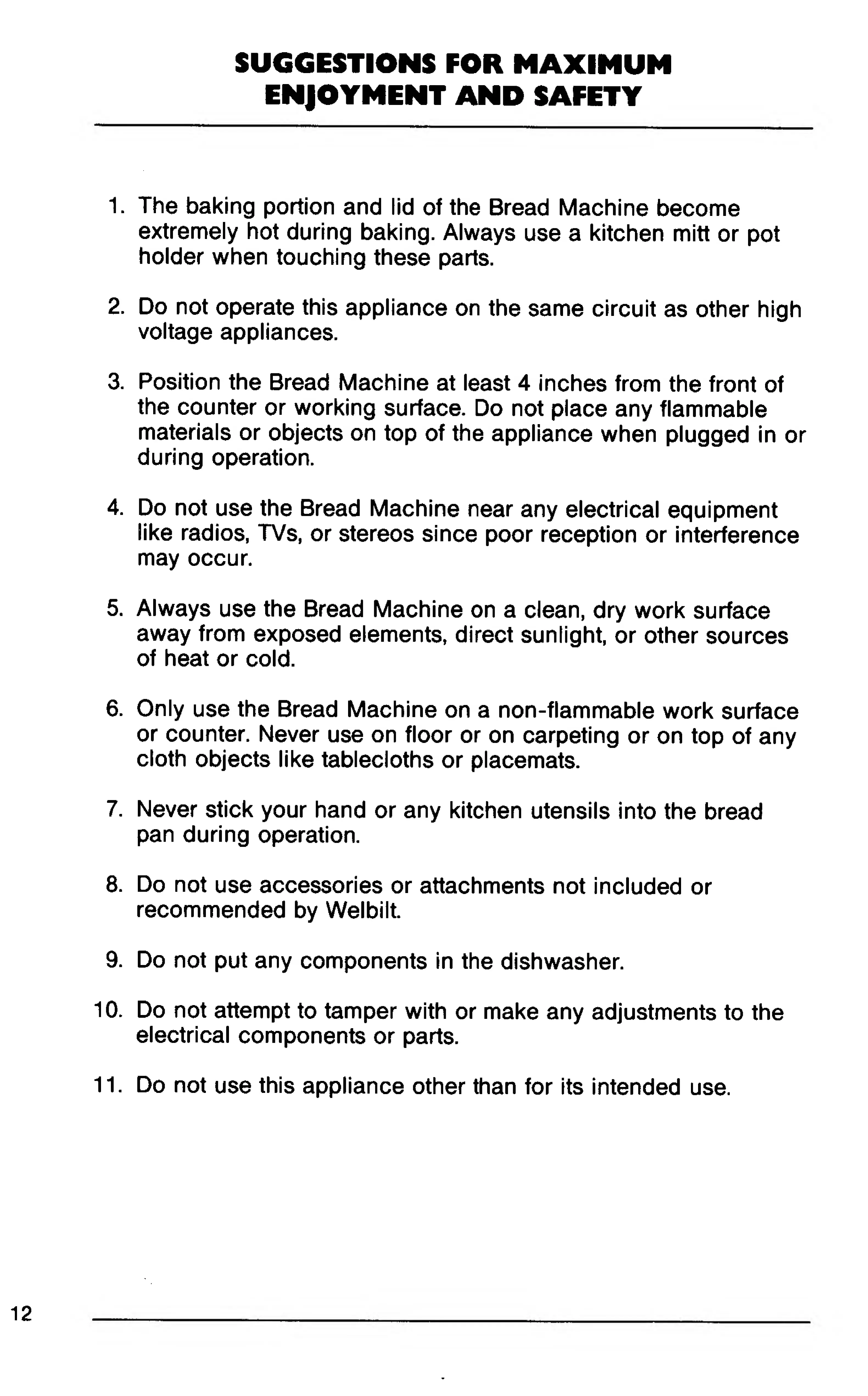 Welbilt ABM6000 - Suggestions for Maximum Enjoyment and Safety