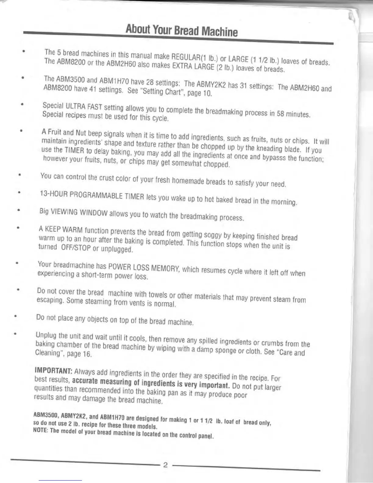 Welbilt AMB3500 - About Your Bread Machine