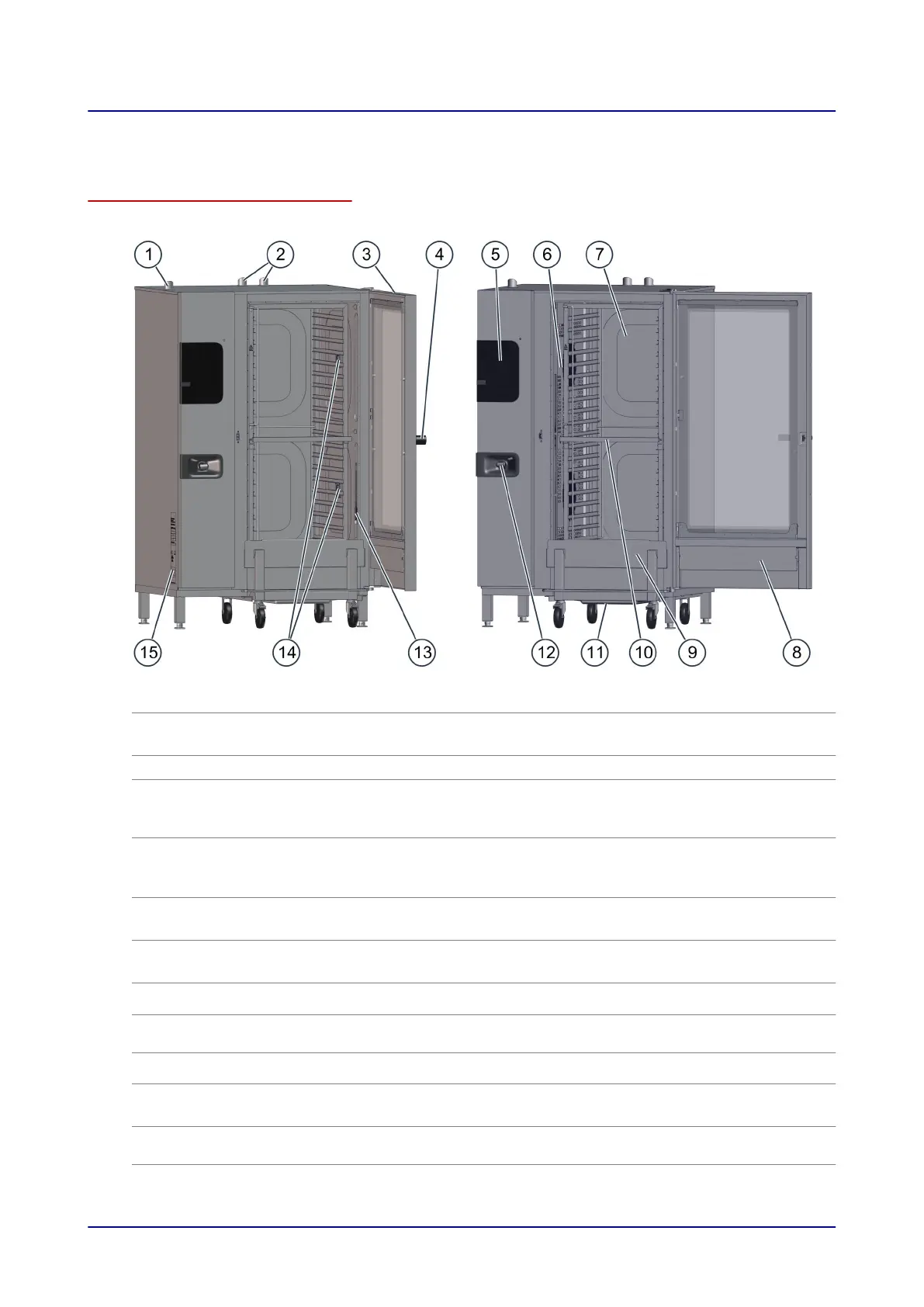 The figure below shows a size 20.20 combi oven used as an example representing all electrical models: