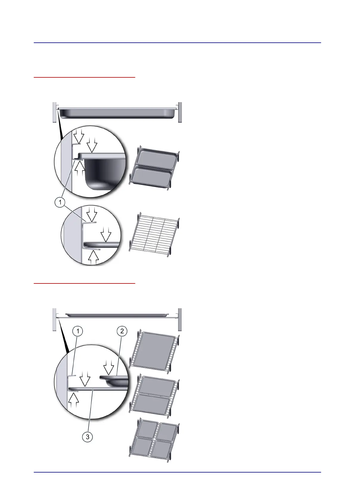 The sheet pans (2) must be placed, one after the other