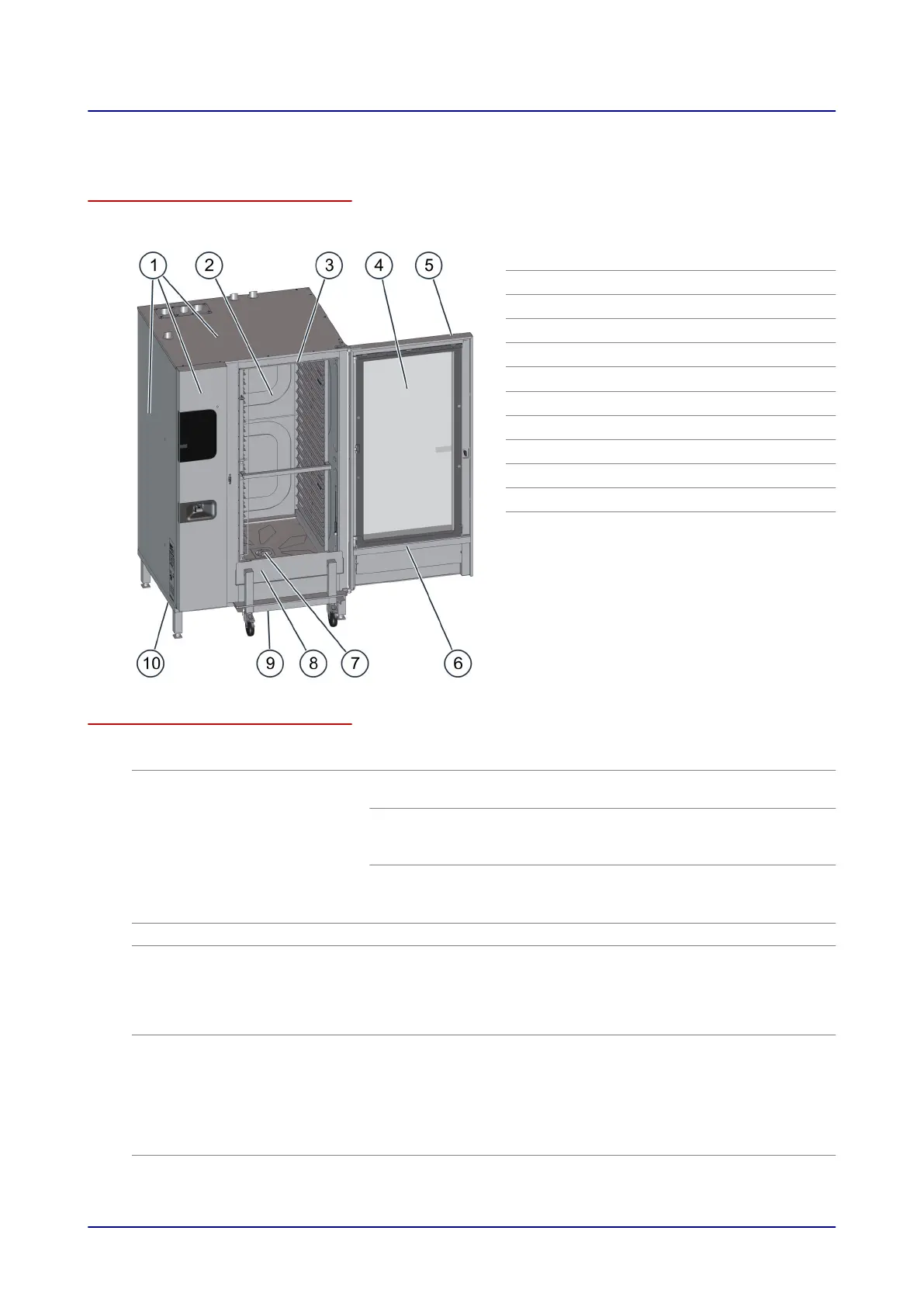 The figure below shows a size 20.20 gas combi oven used as an example representing all models: