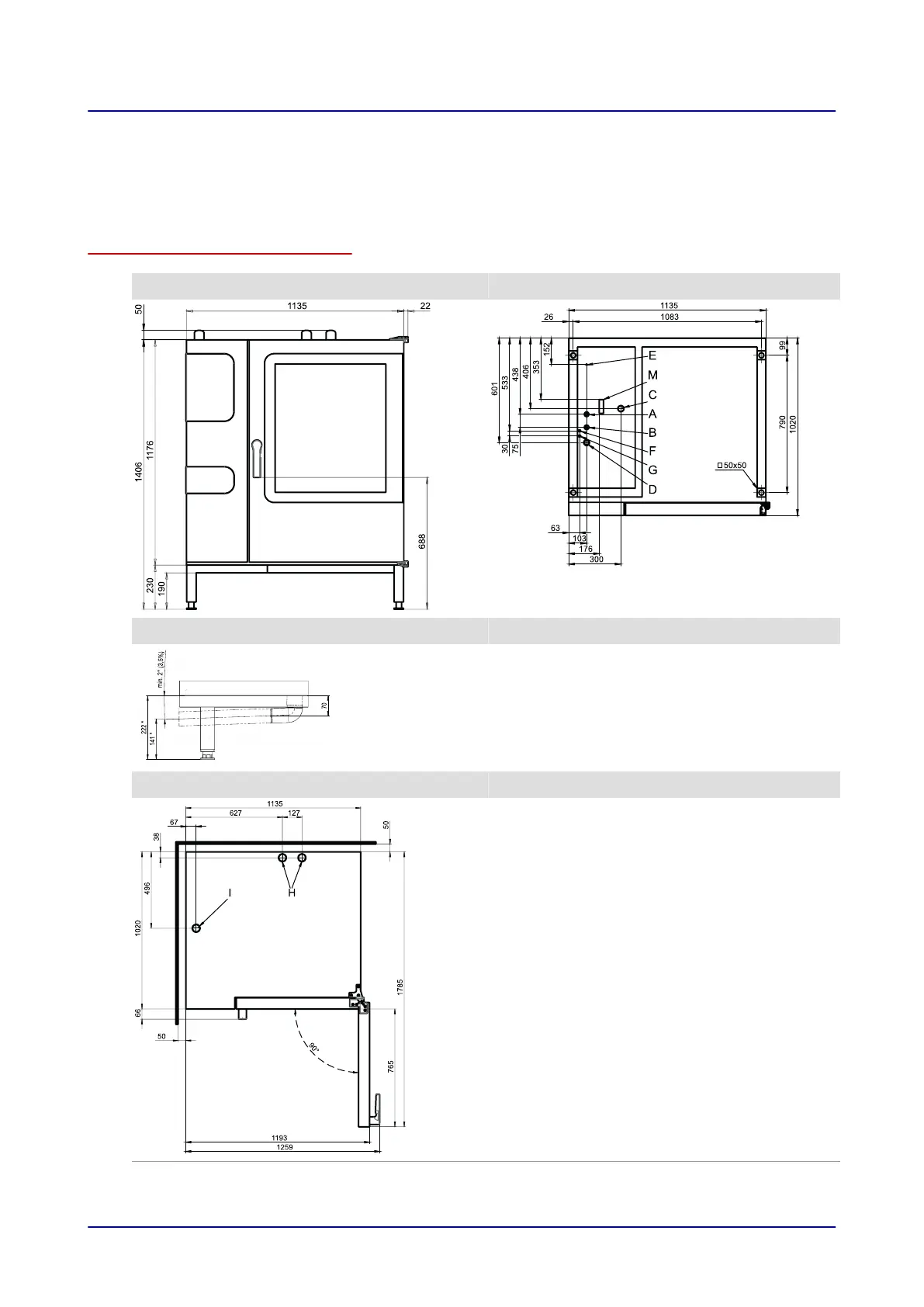 Dimensions and connection points for C4 12.20 (right-hinged appliance door)