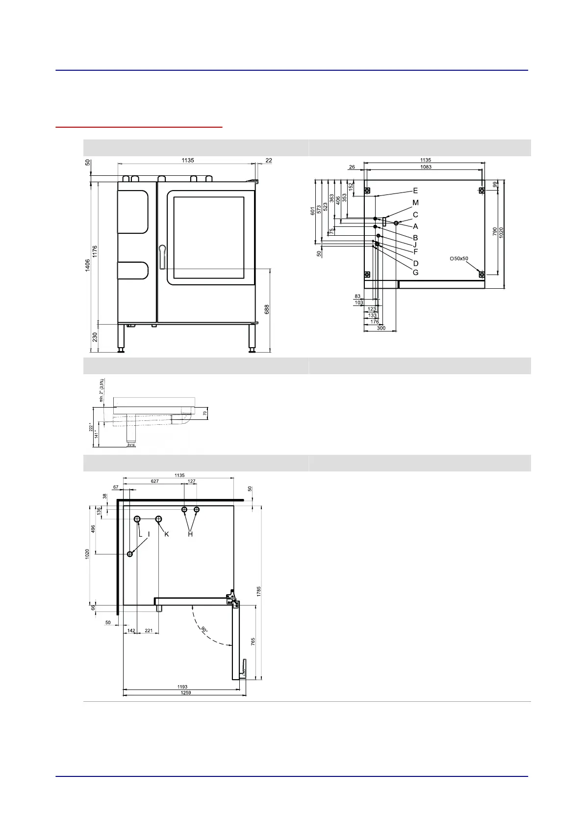 Dimensions and connection points for C4 12.20 (right-hinged appliance door)