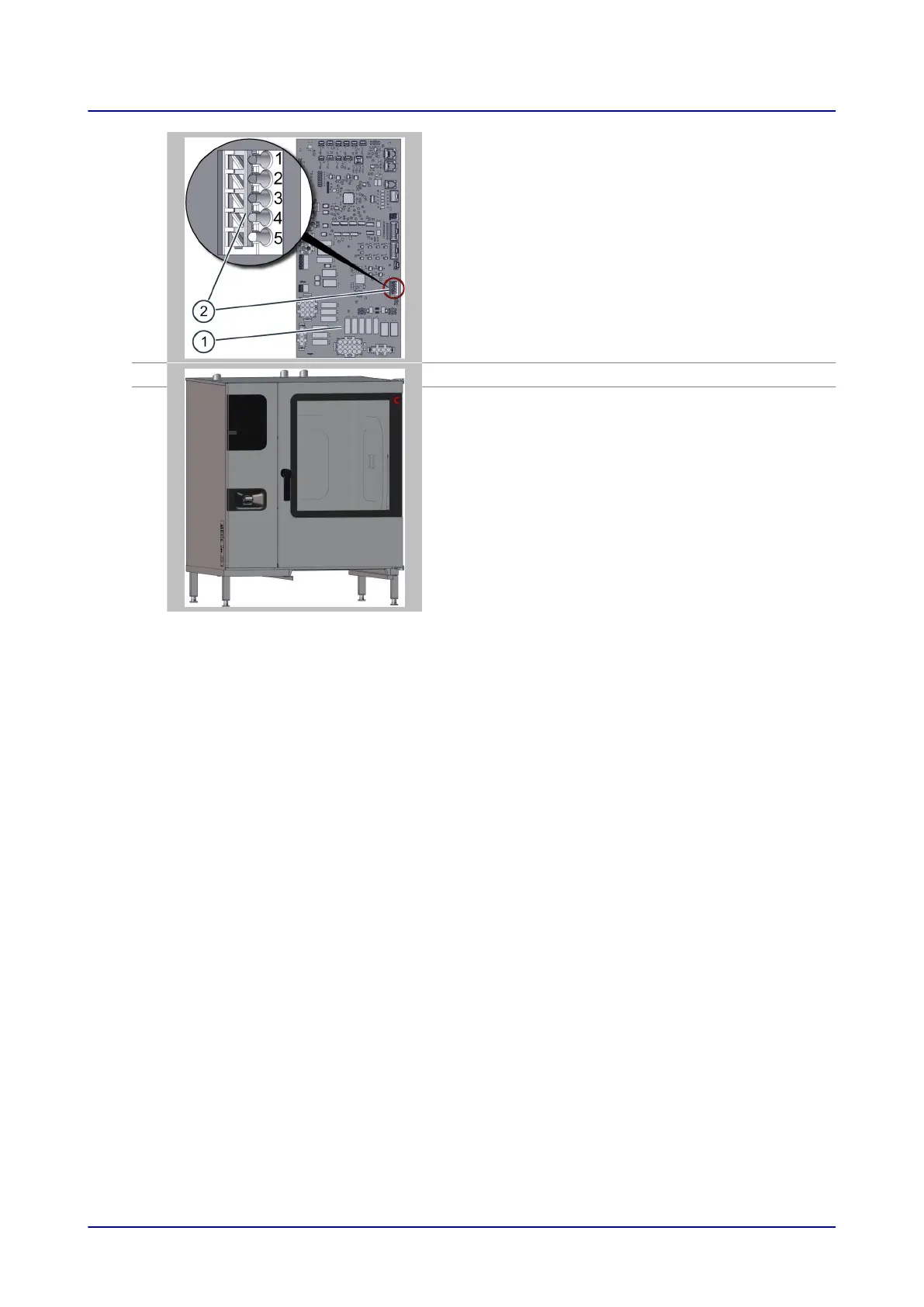 Connect the signal-tower connecting cable to the combi oven in ac-