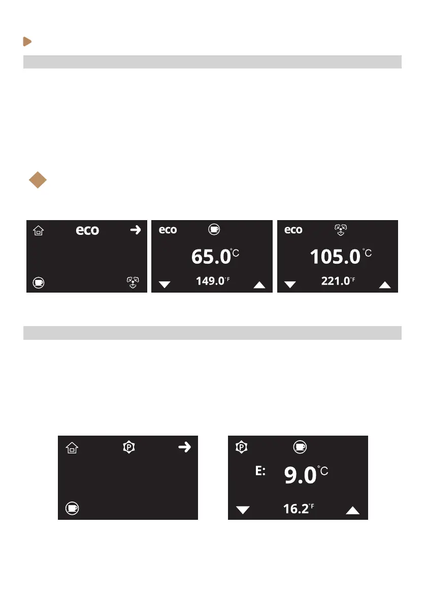 To change the machine’s steam and group boilers ECO mode temperatures setting, follow the steps