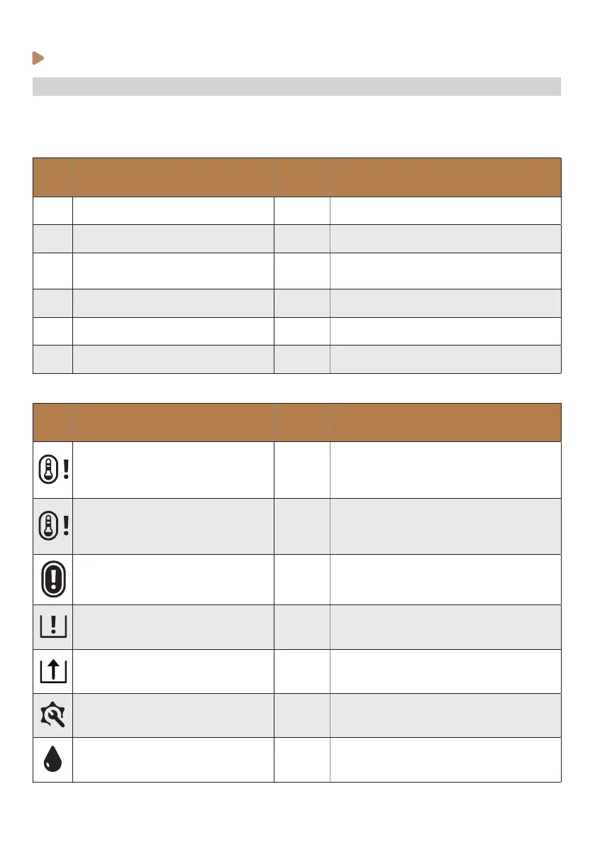 Water tank not in place Alarm Put the tank in the correct position