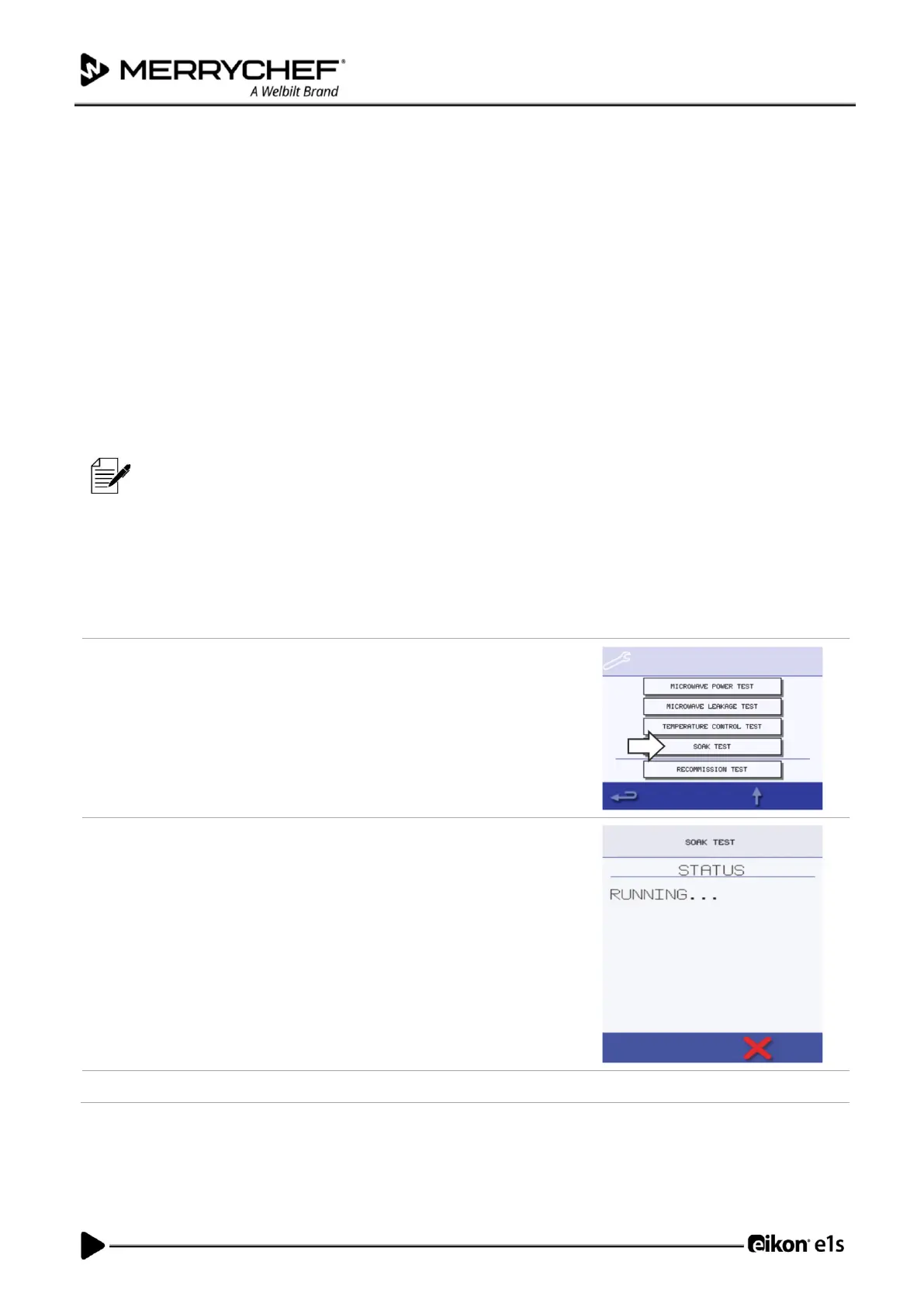 Close the appliance door and select ‘Soak Test’ from the Service Mode oven