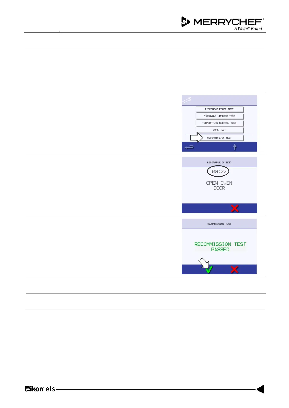 Select ‘Recommission Test’ from the Service Mode oven tests and follow