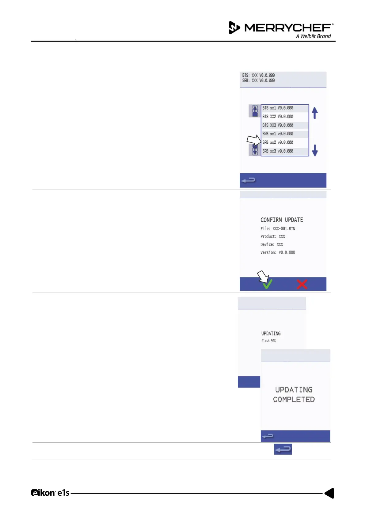 displayed followed by the update status and confirmation screens.