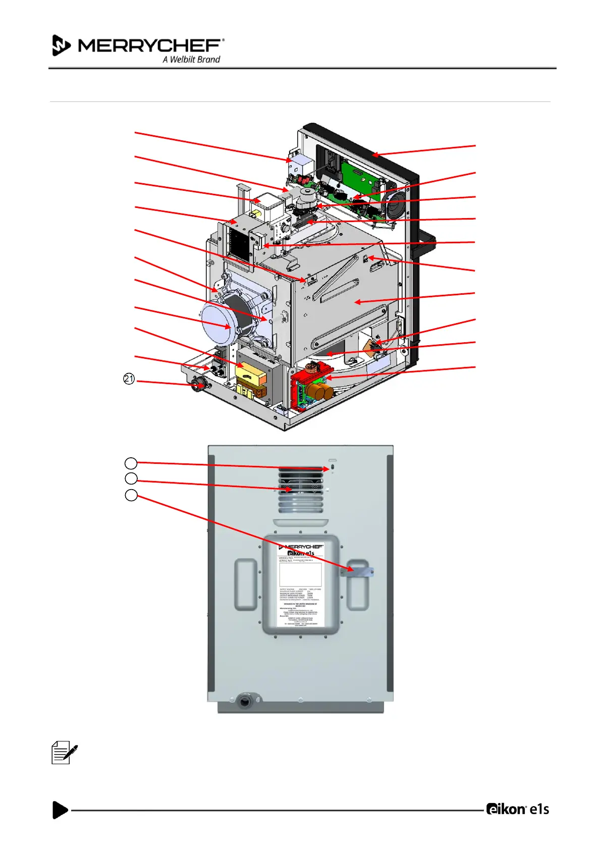 The exact position of the parts and components may vary depending on the version of the oven that you have