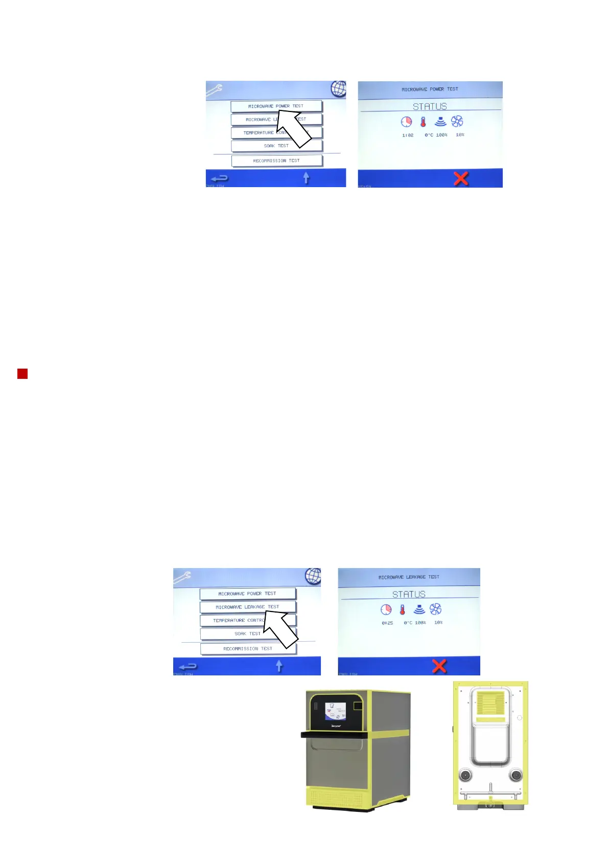 Note: Opening the door during the test will stop the test. Reselect the test to run again.