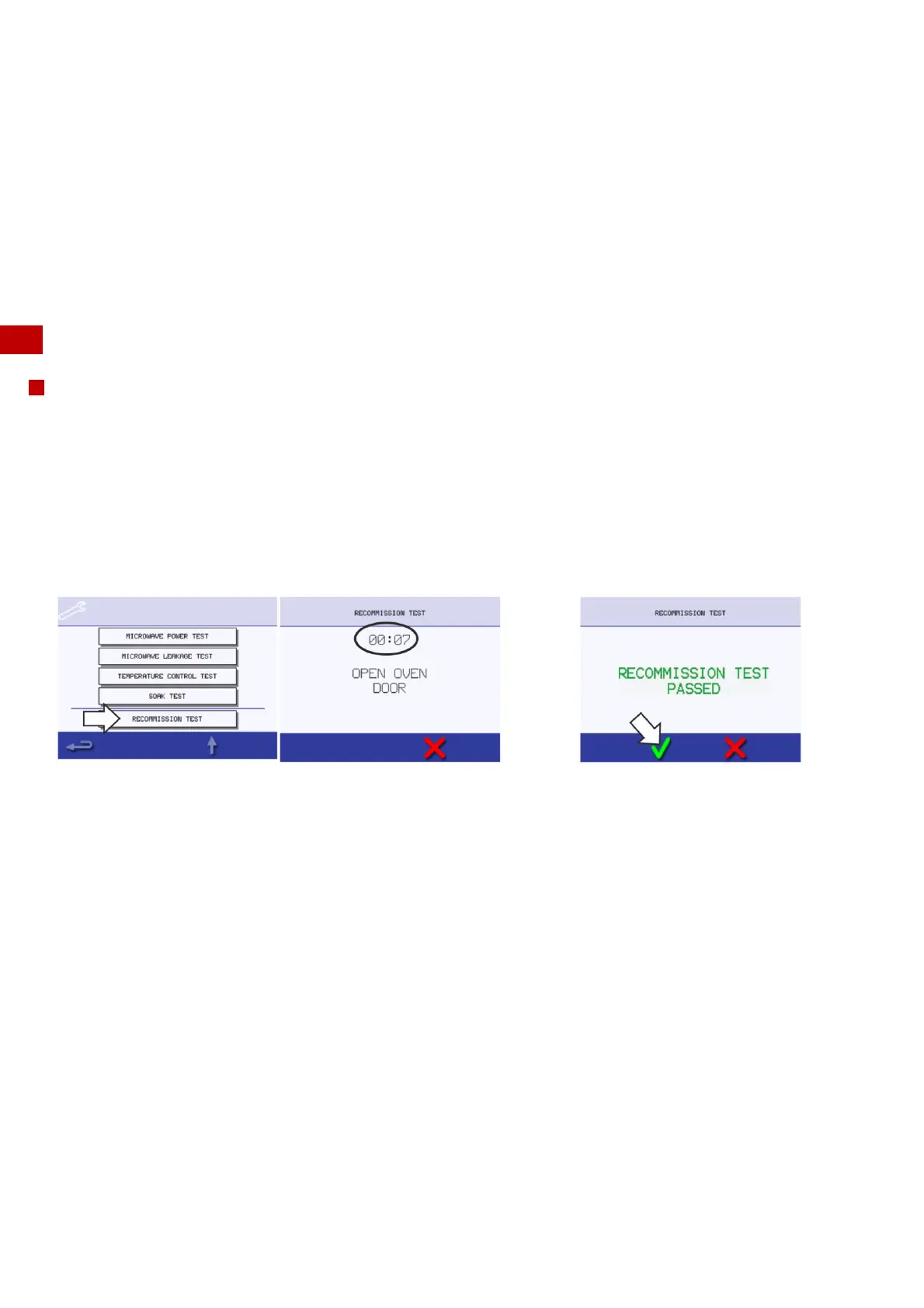 1. Select ‘recommission test’ from the Service Mode oven tests
