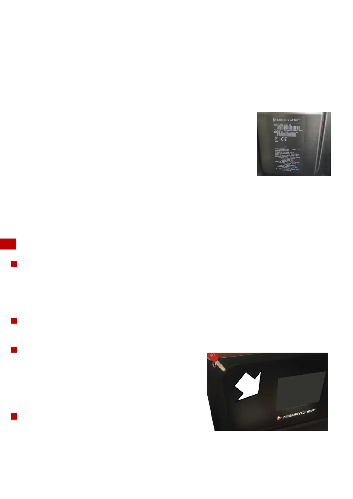 § The first screen will ask for the oven serial number, add the number from the serial plate on the oven. Ensure this is