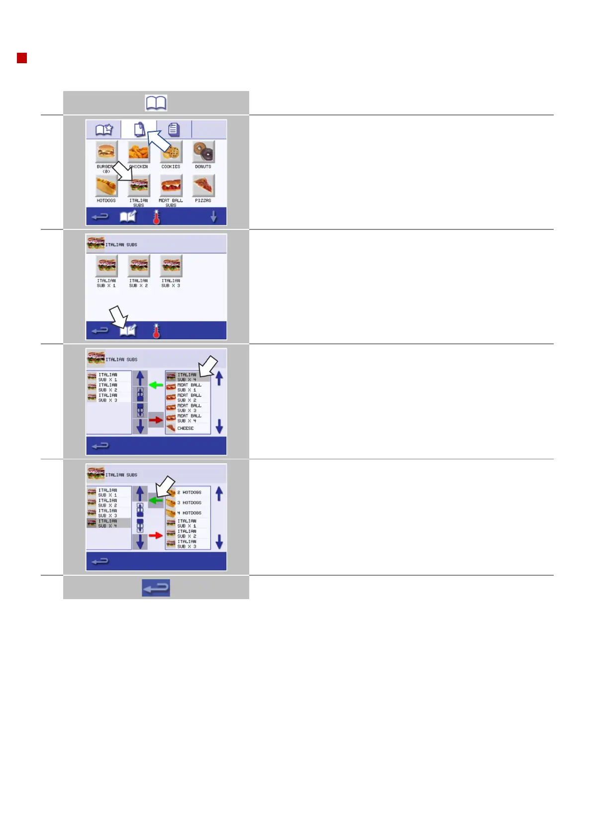 Select the green 'left' arrow to add the ‘ITALIAN SUB x 4’ cooking
