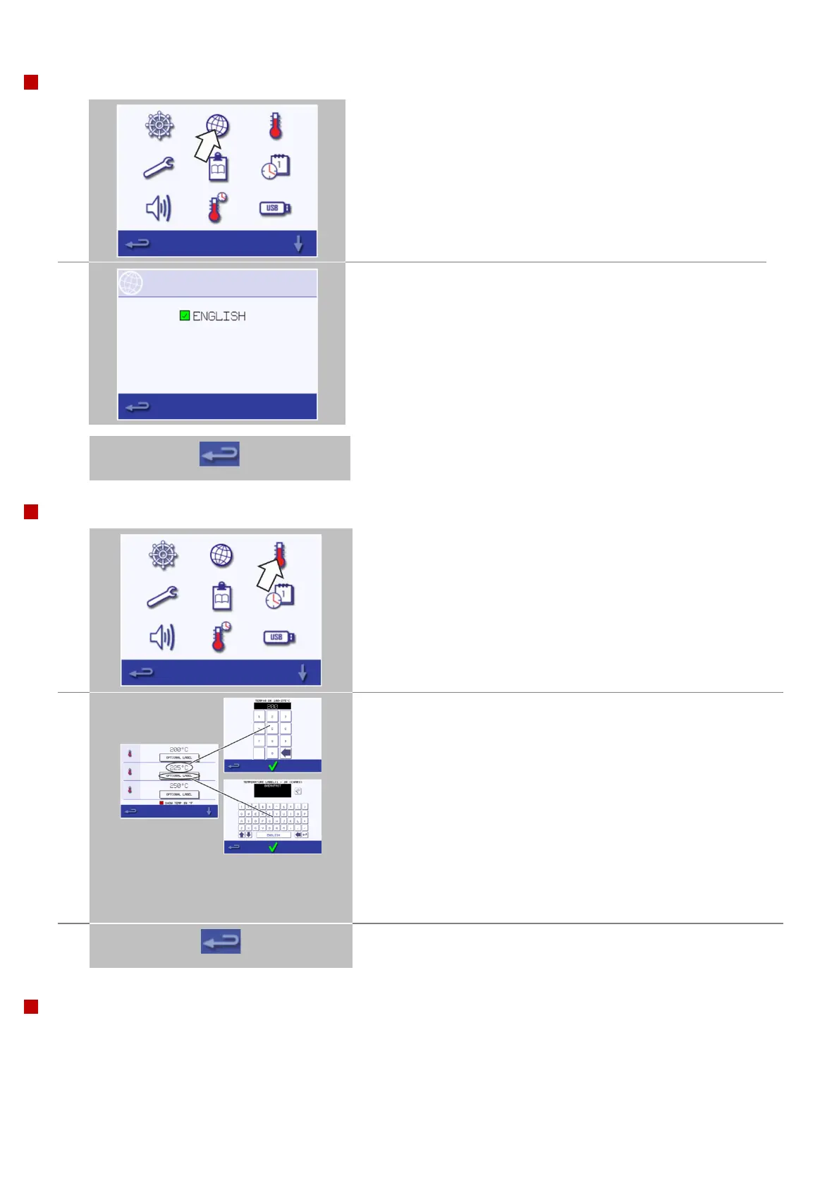 Enter the required temperature on the appearing keypad and select
