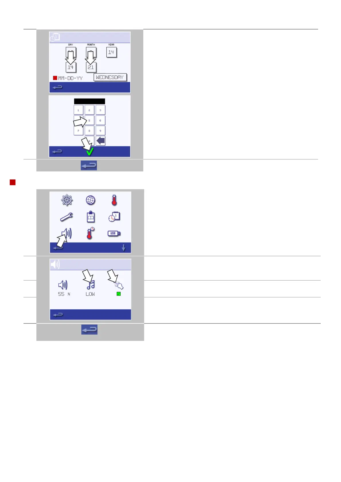 Select the 'music note' symbol to set LOW, MED or HIGH tone.