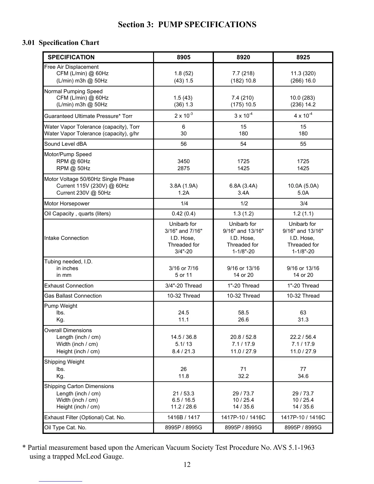 CFM (L/min) @ 60Hz 1.5 (43) 7.4 (210) 10.0 (283)