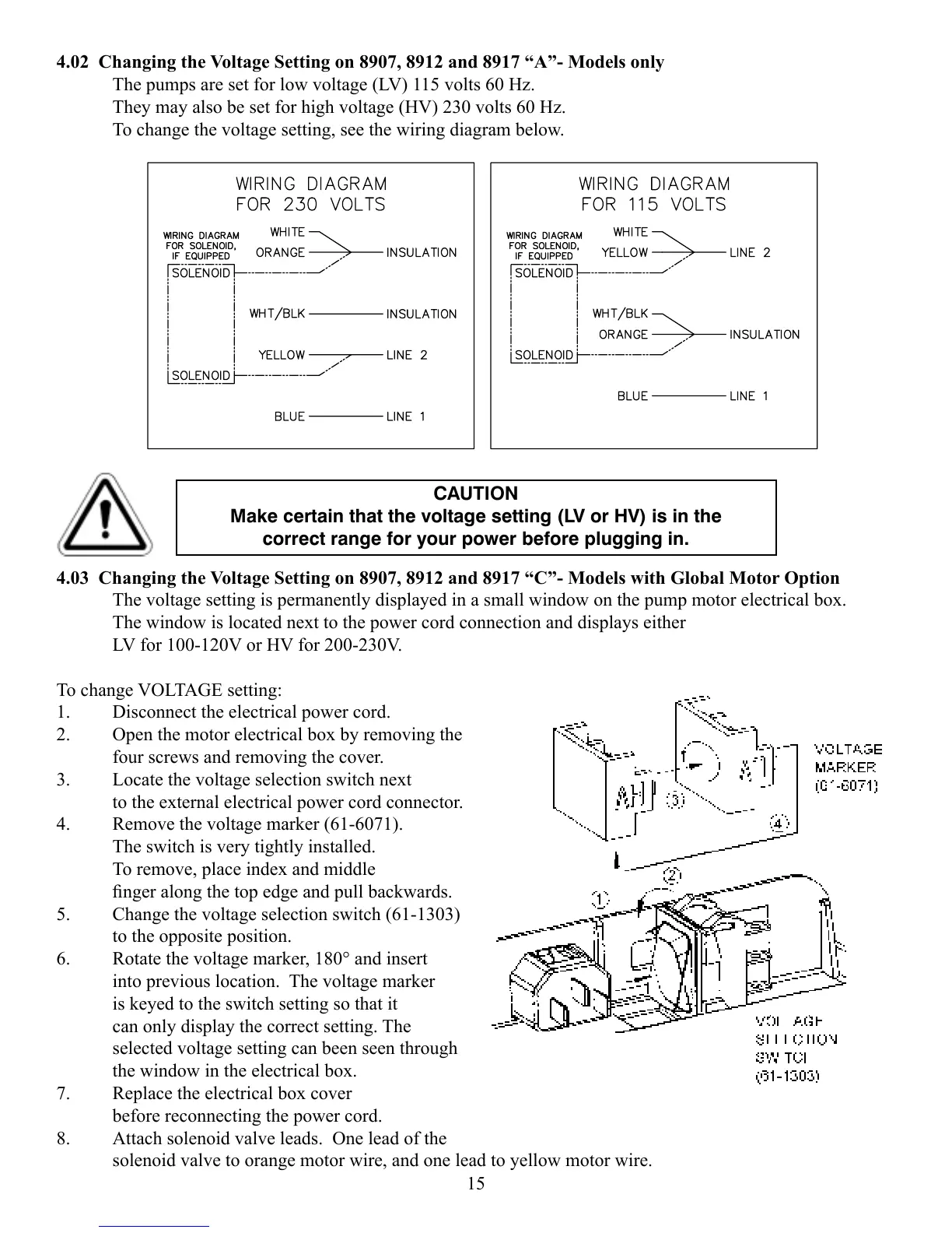 4.03 Changing the Voltage Setting on 8907, 8912 and 8917 “C”- Models with Global Motor Option