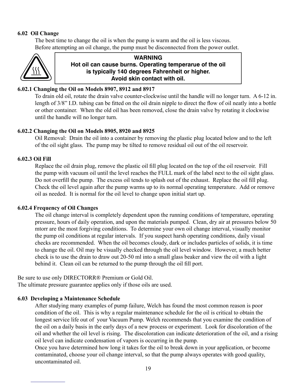 6.02.1 Changing the Oil on Models 8907, 8912 and 8917