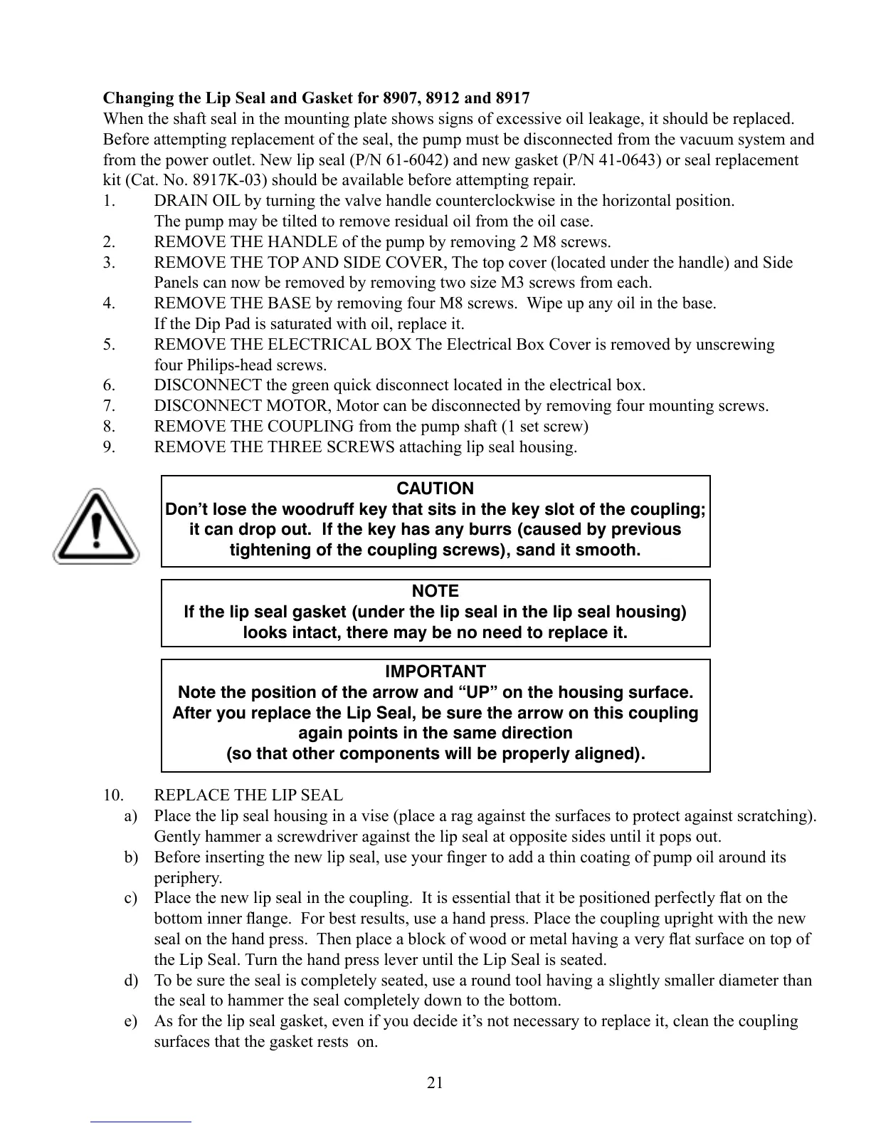 Changing the Lip Seal and Gasket for 8907, 8912 and 8917