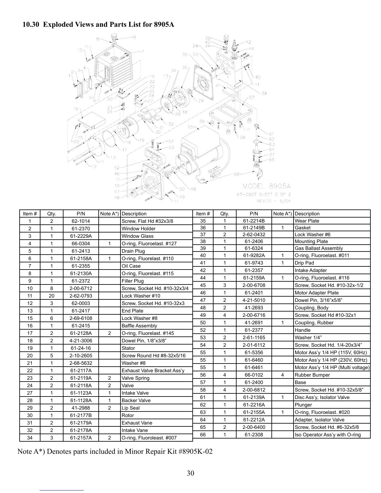 Note A*) Denotes parts included in Minor Repair Kit #8905K-02