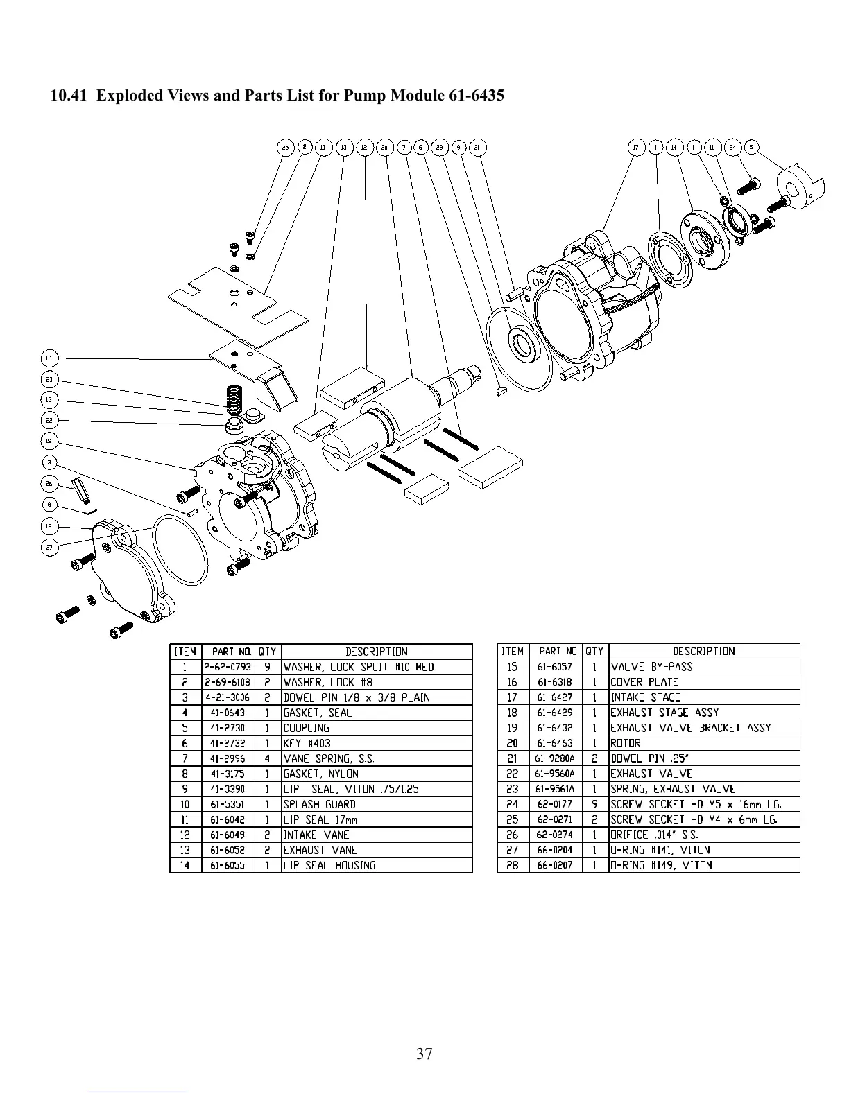 10.41 Exploded Views and Parts List for Pump Module 61-6435