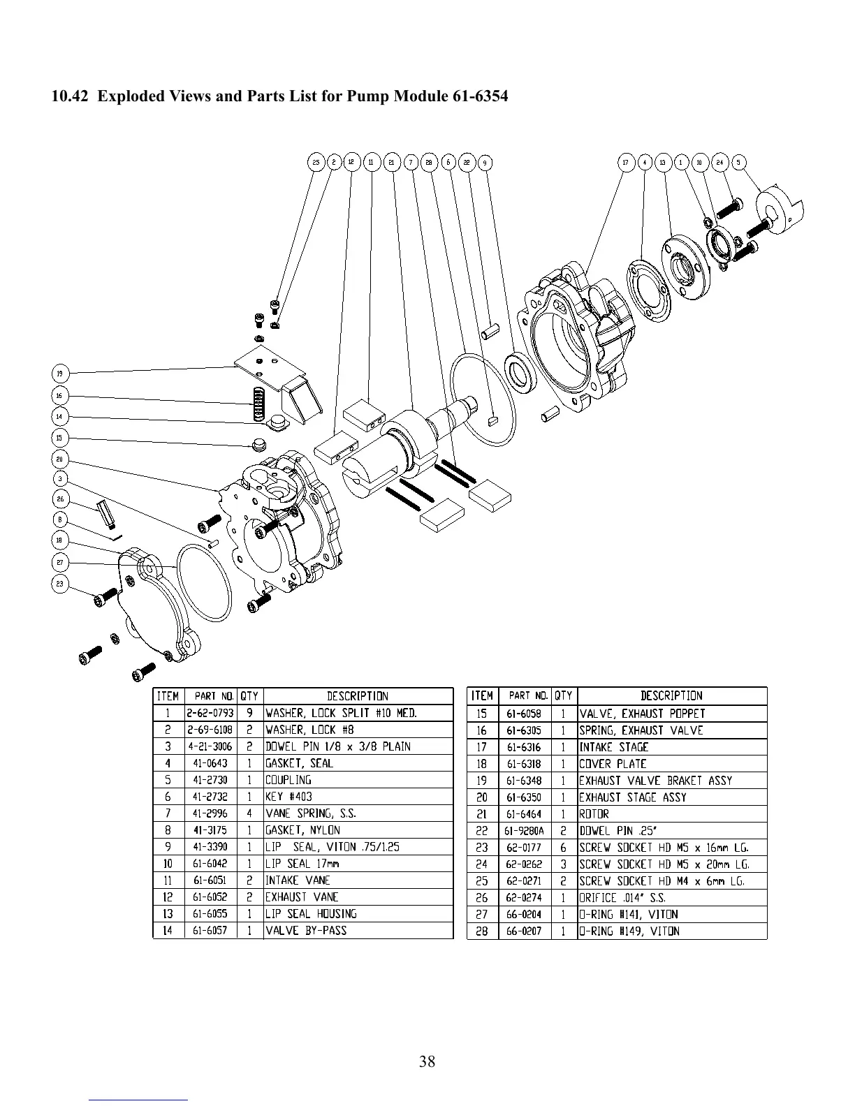 10.42 Exploded Views and Parts List for Pump Module 61-6354