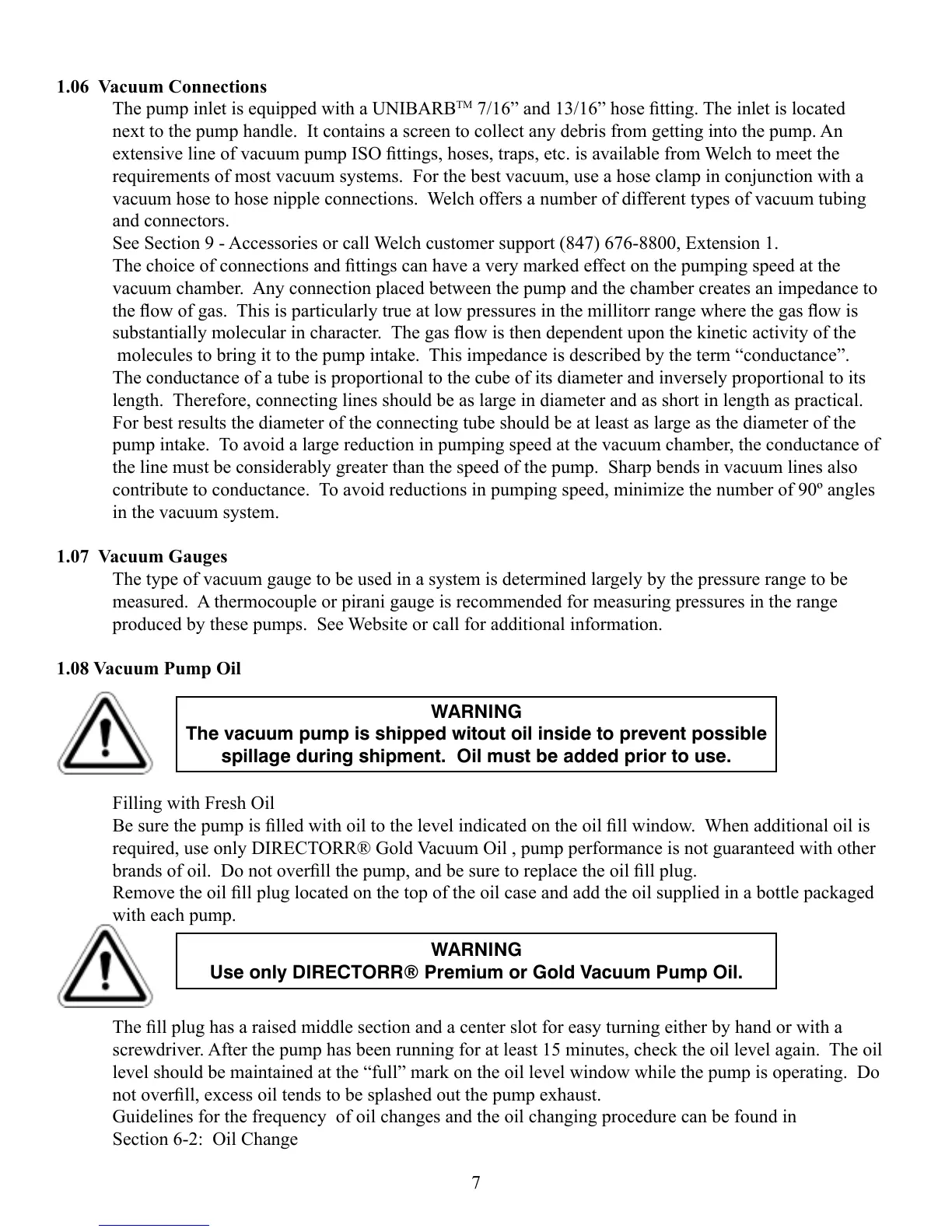 required, use only DIRECTORR® Gold Vacuum Oil , pump performance is not guaranteed with other