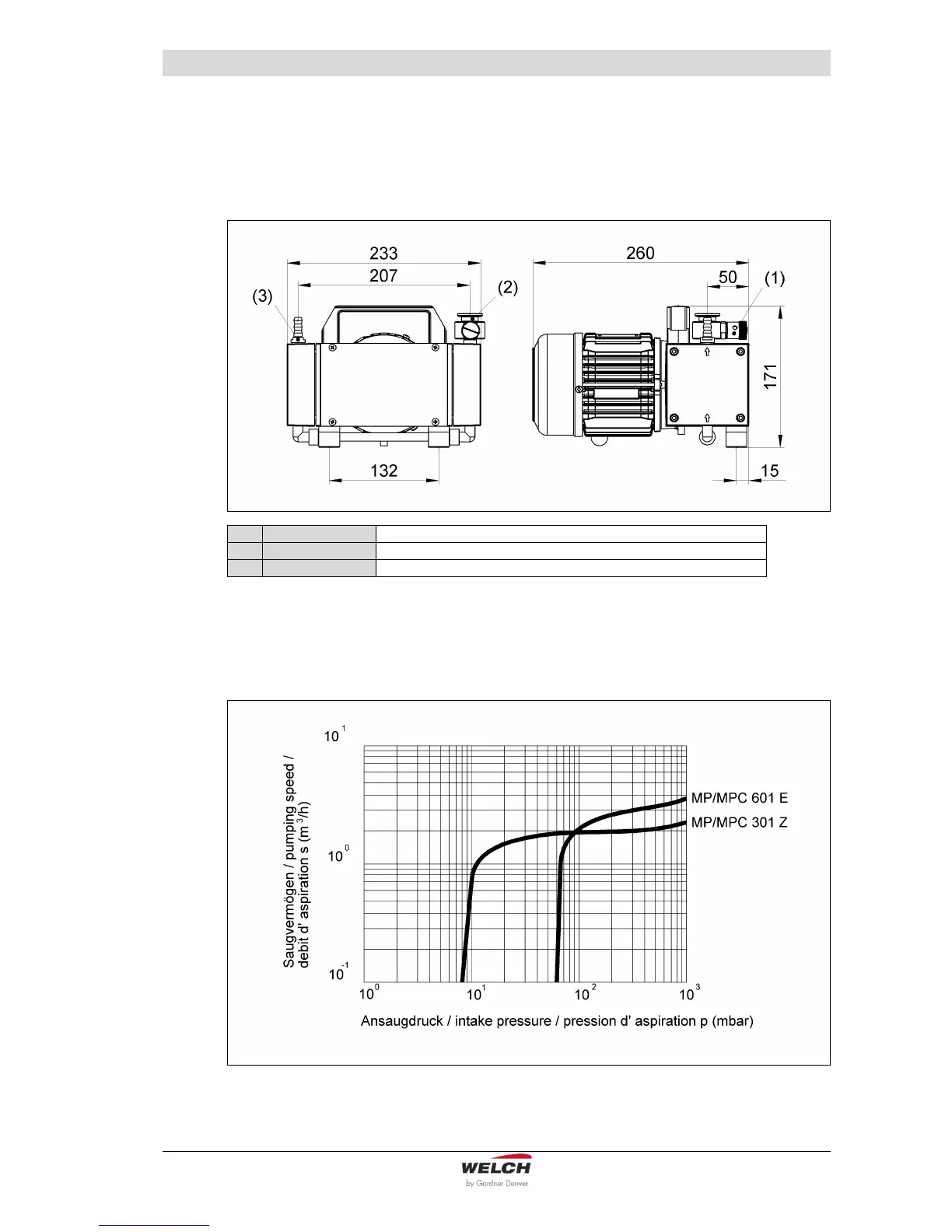 Welch MP 601 E - 4 Technical Data; Dimensions; Intake Pressure; Pumping Speed - Diagram