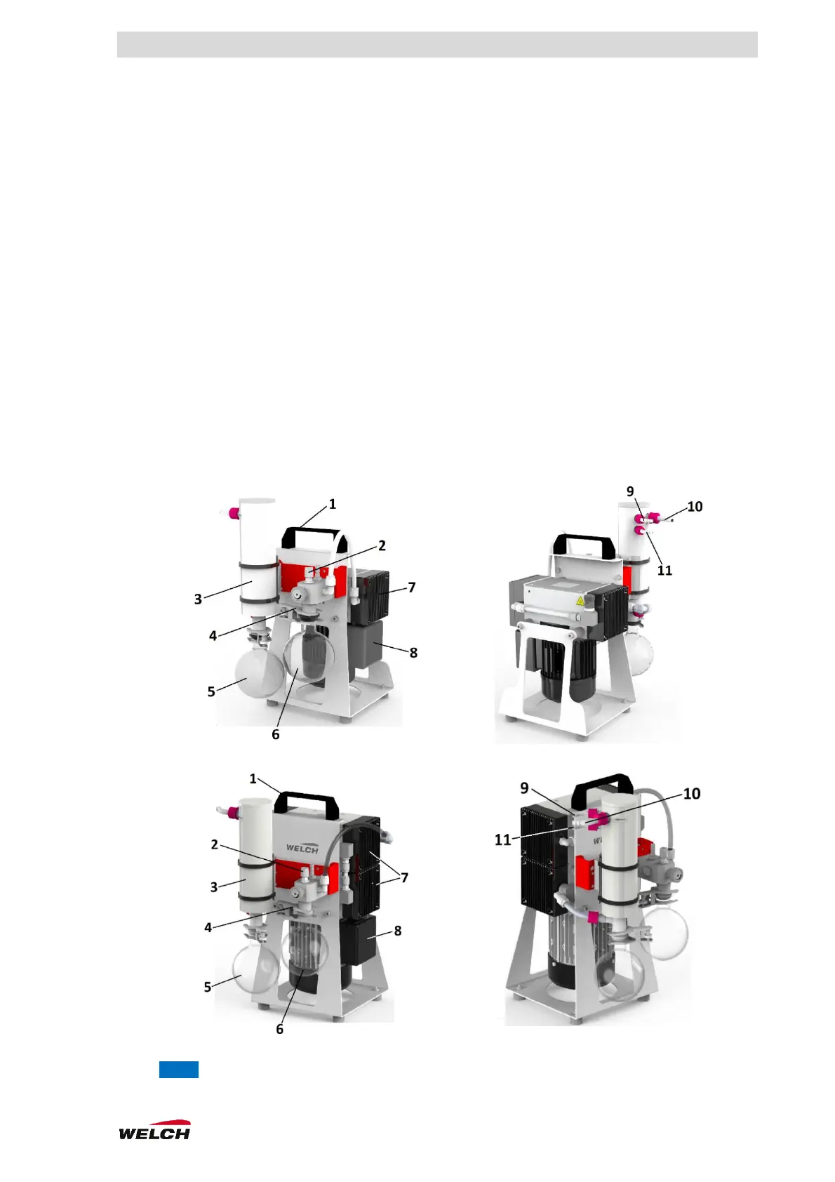 The device consists of a vertically mounted vacuum diaphragm pump (pump for short) and