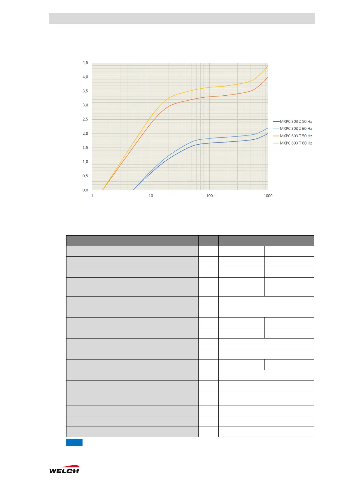 Welch MXPC 603 T - Characteristic Values; Pumping Speed; Parameters