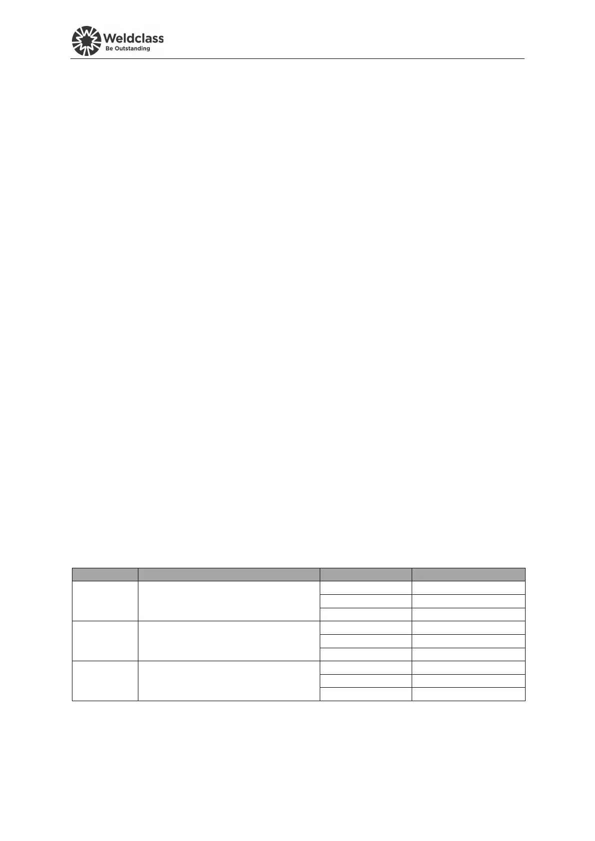 11.6 Suggested Settings for Typical Stick (MMA) Applications