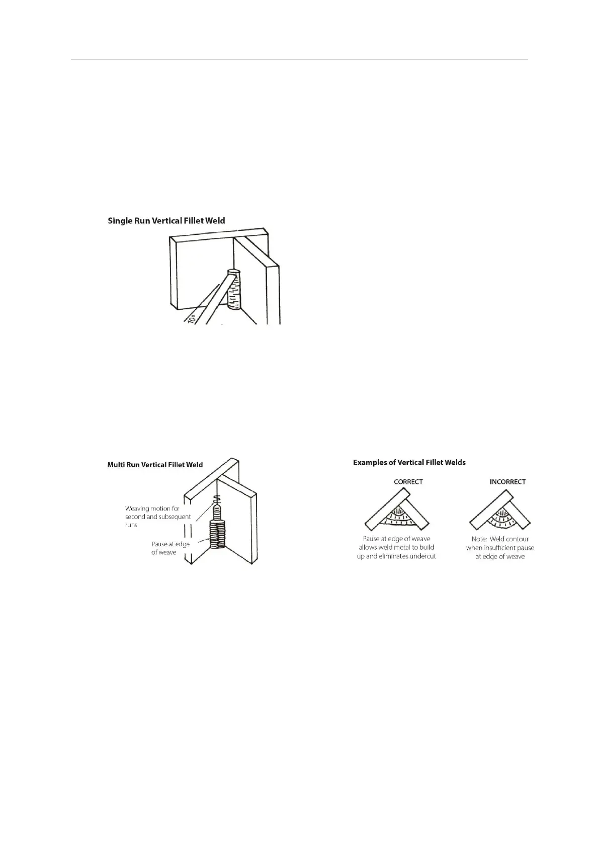 edges, otherwise undercut will form and too much metal will accumulate in the centre of the weld.