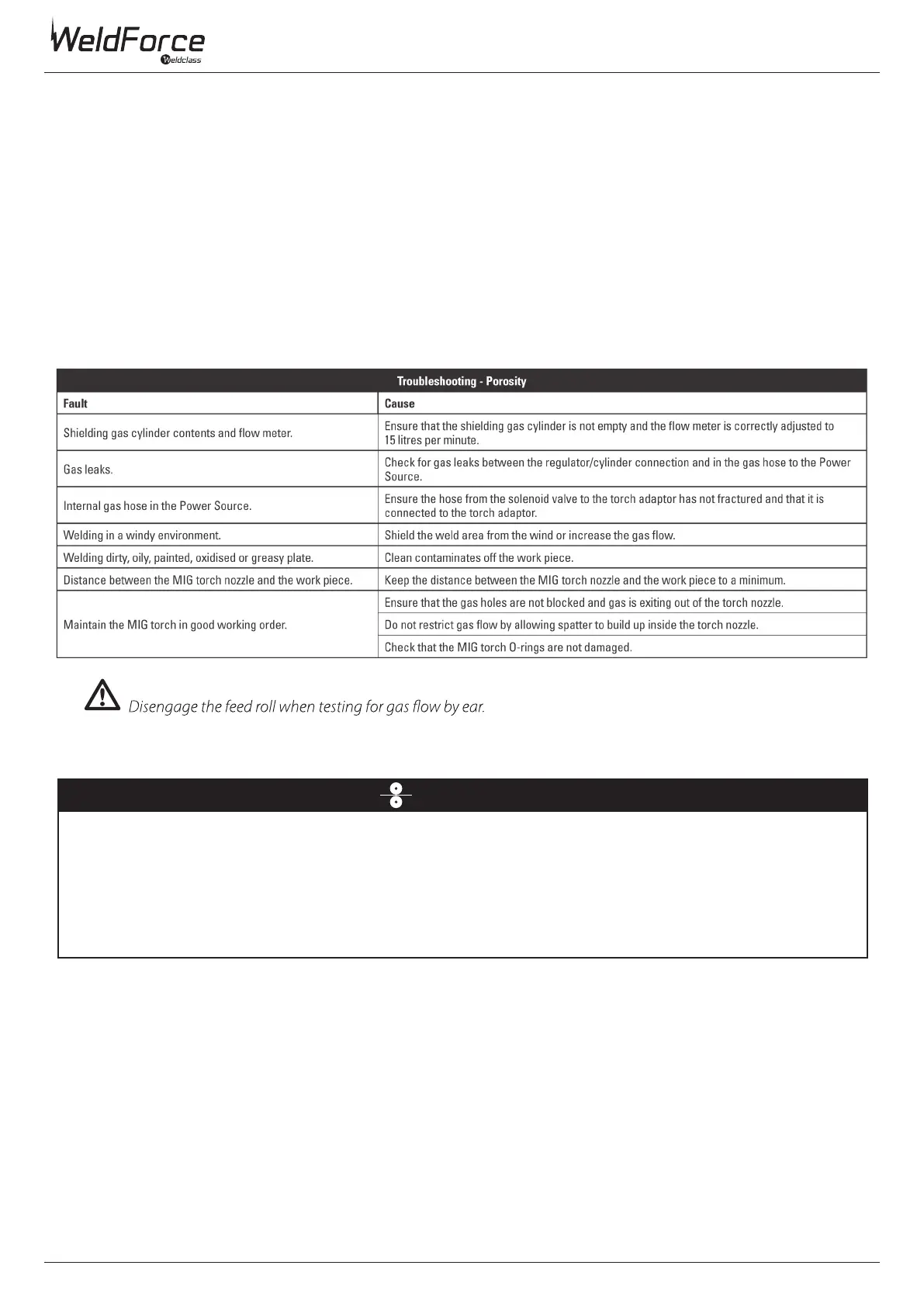 • If wire jam occurs when the torch becomes hot, this is often because the heat causes the wire and the tip