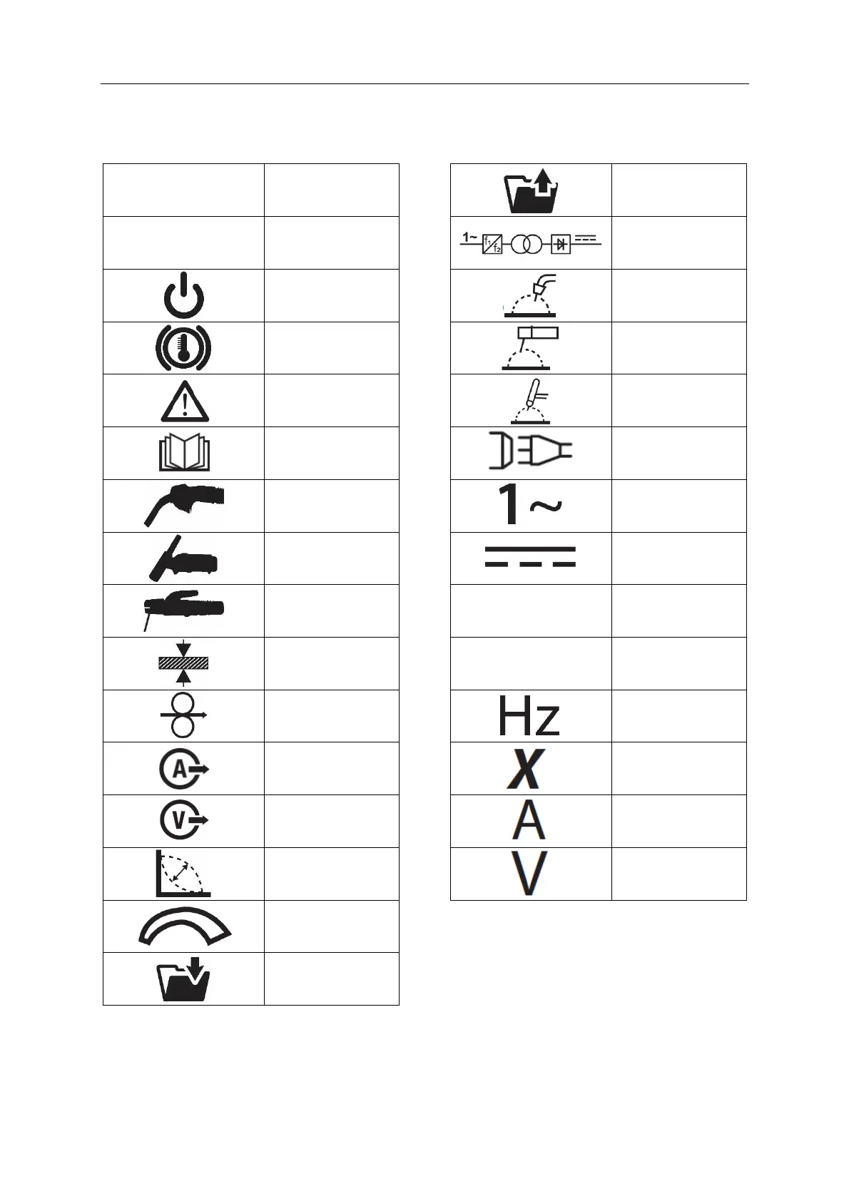 Weldclass WeldForce WF-255MST - Symbols Chart