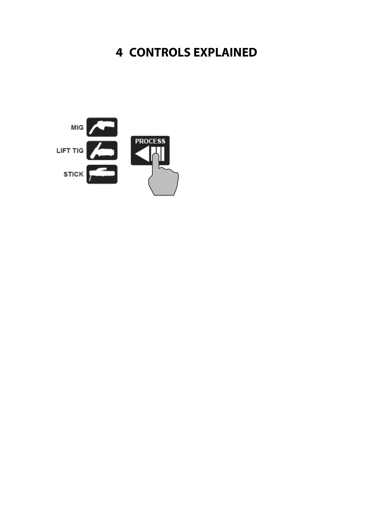1. Press ‘Process’ button (29) until the desired Welding Process Indicator Light (28) is lit.