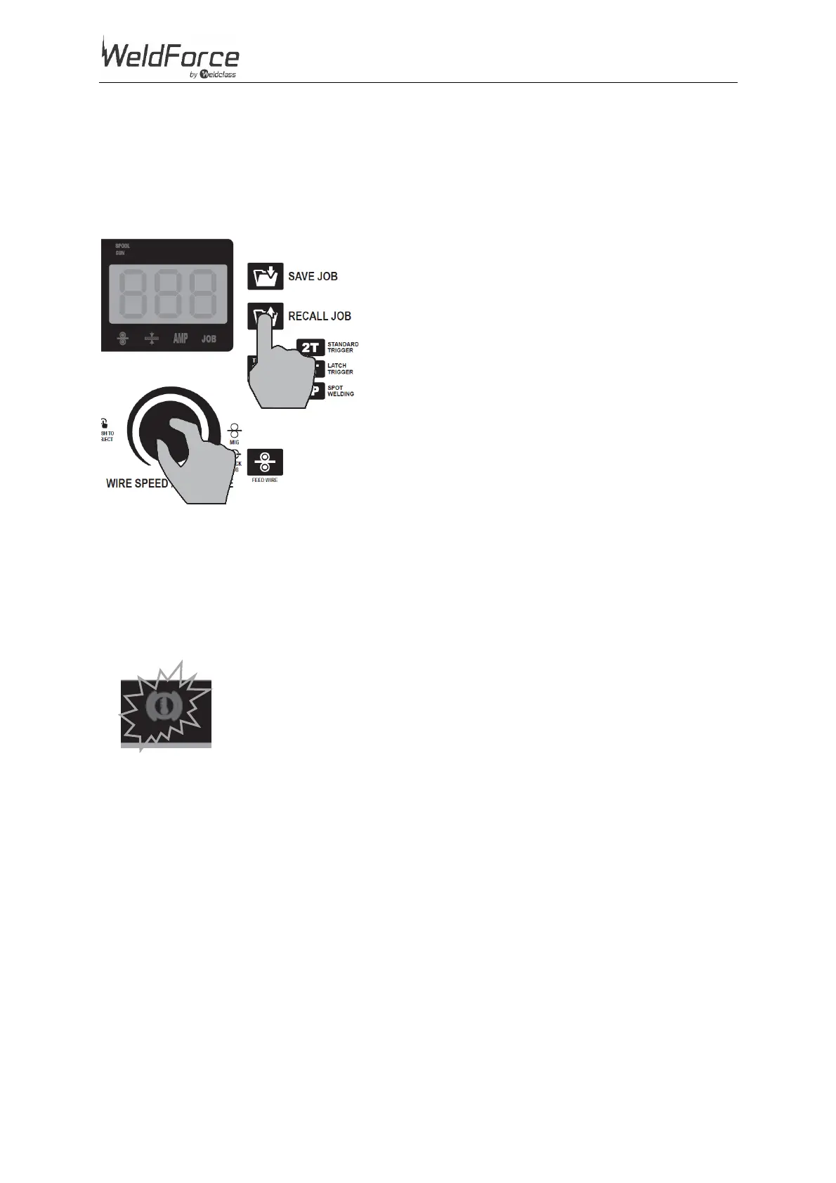 will alternate between displaying the selected Job number and the Amperage setting for that
