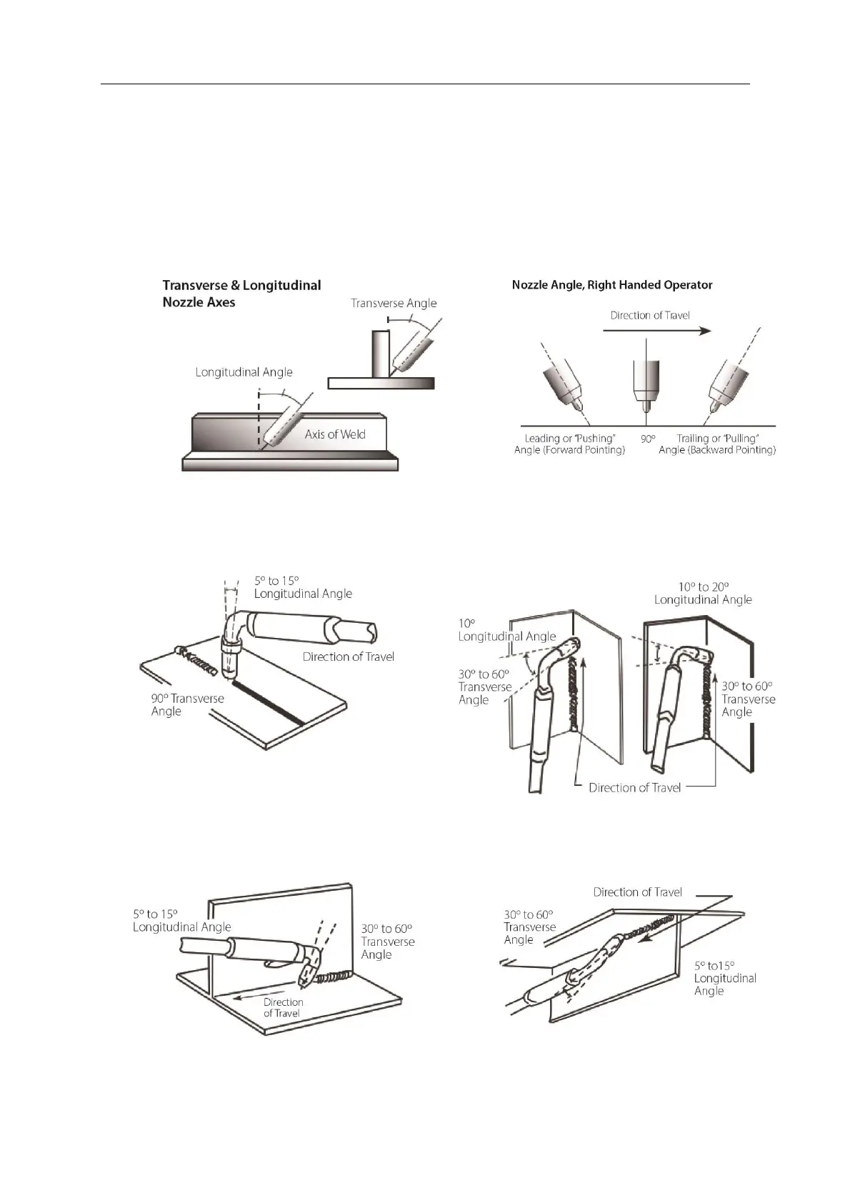 perpendicular to the axis of the weld. The longitudinal angle is generally called the Nozzle Angle