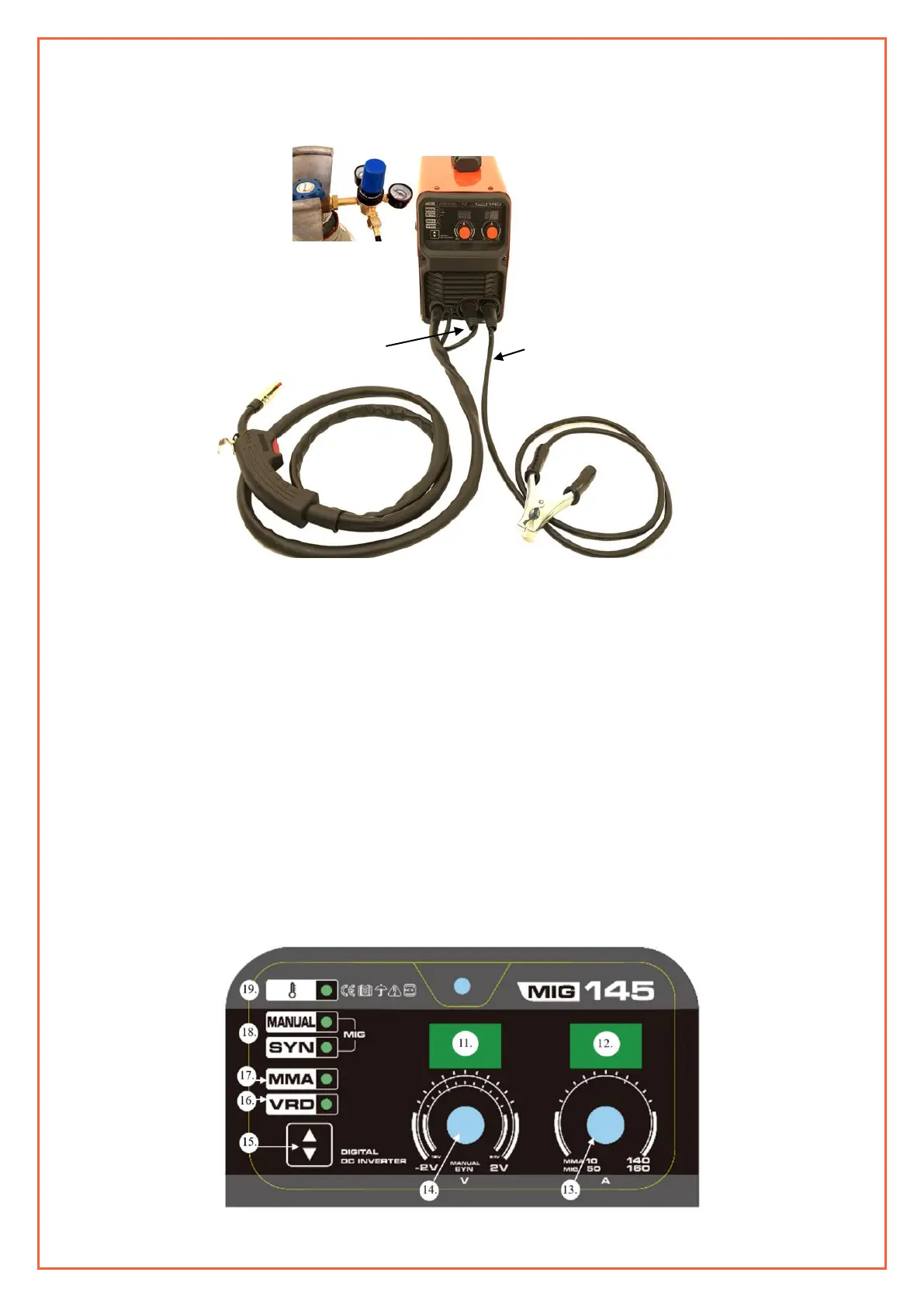 • Connect Polarity cable (3) to the positive + welding output terminal (1).