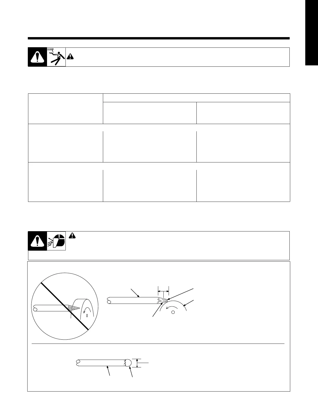 ! Grinding the tungsten electrode produces dust and flying sparks which can cause injury and start fires. Use