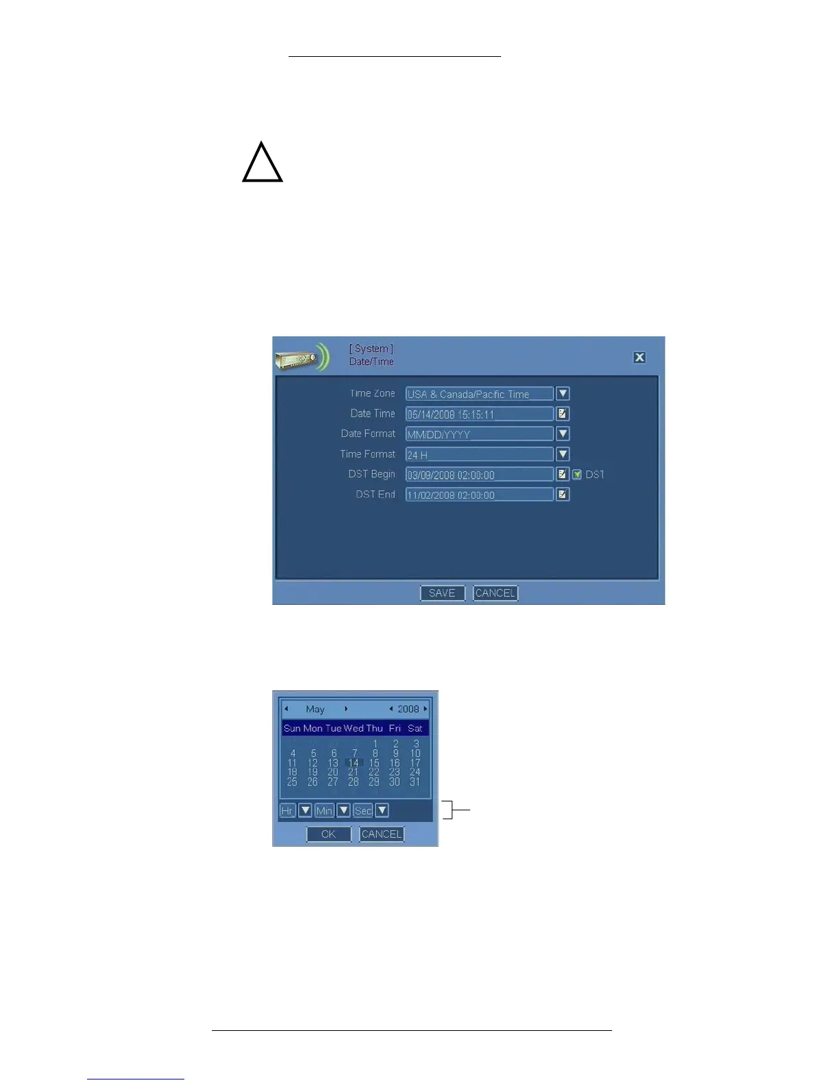 3. When the Calendar window is accessed from the Date/Time window, in