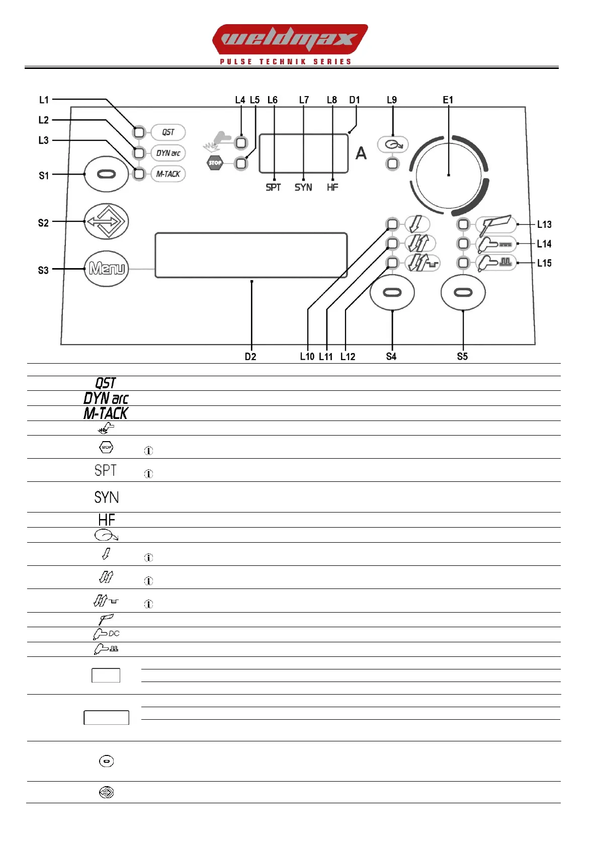 When this is on, it means that the synergic mode is active and that the operator can set just the welding current while the other parameters are